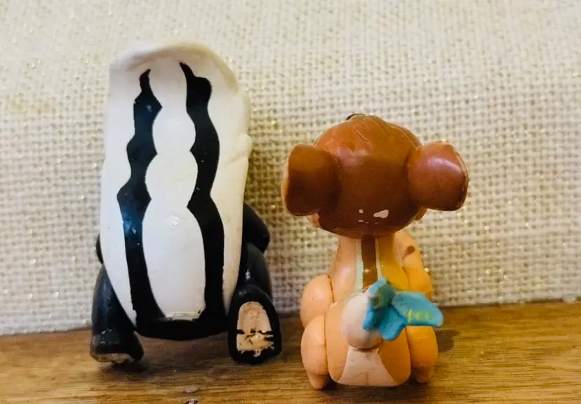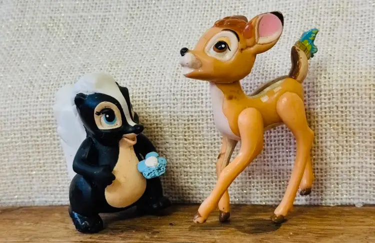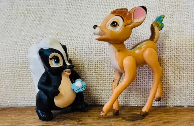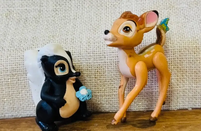 Delight in the magic of yesteryear with this enchanting lot of two vintage Disney Bambi action figures, each standing at 2.5 inches and 3 inches tall. These charming representations capture the essence of the beloved characters, meticulously crafted to bring a touch of nostalgia to any collection.The set features the timeless Bambi figure, accompanied by his loyal friend Flick, adding a whimsical flair to your Disneyana treasures. Ideal for collectors and fans alike, these figures are a testament to the enduring legacy of Disney's classic storytelling.