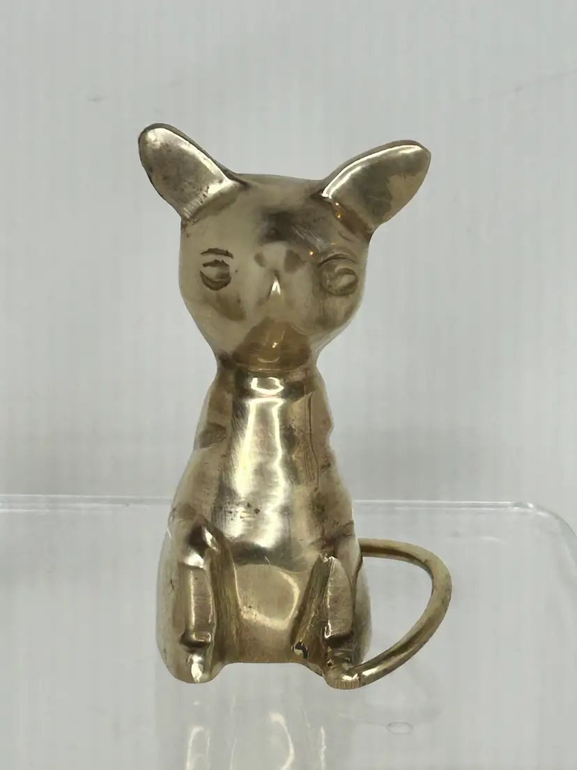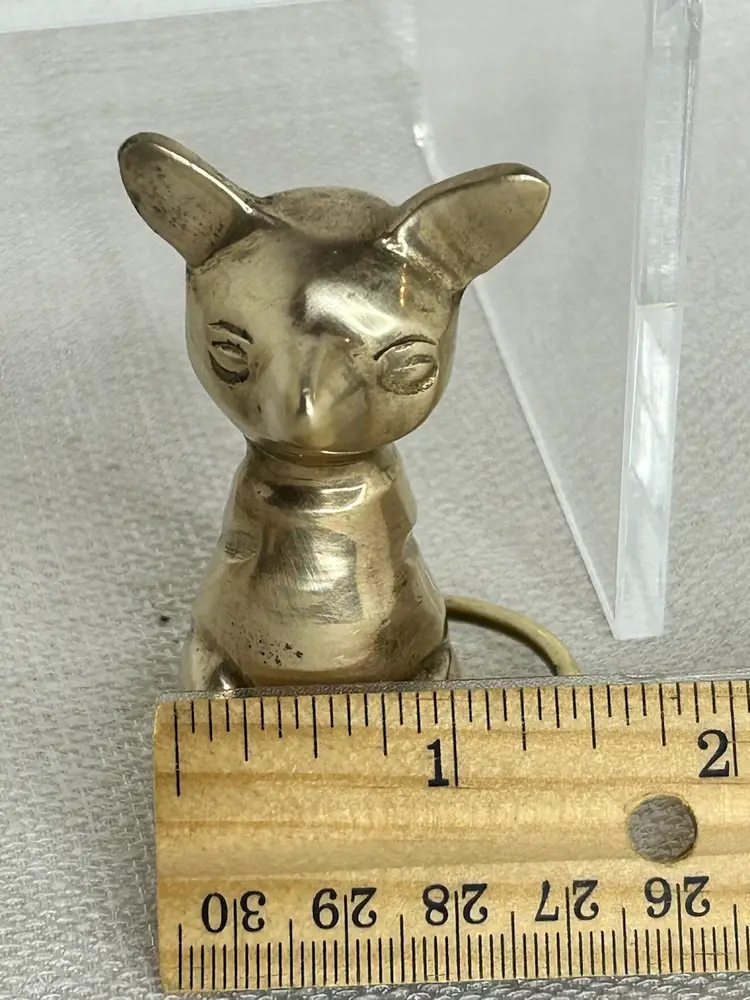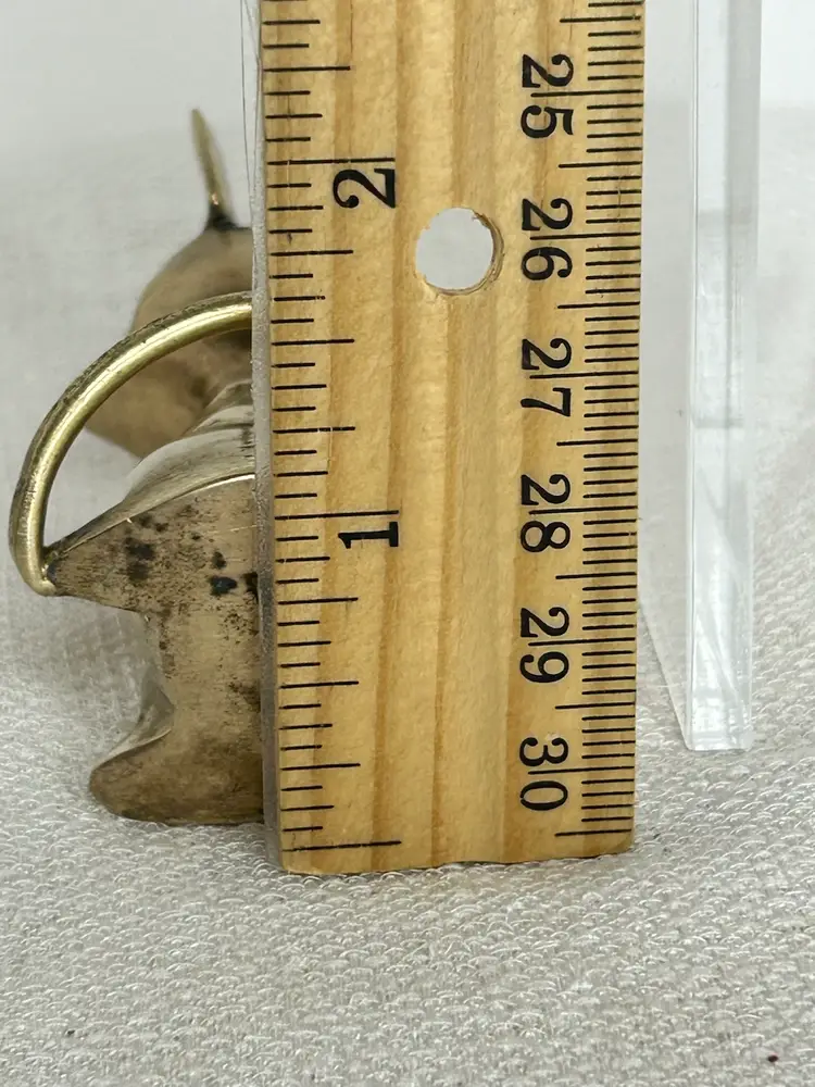 This vintage solid brass mouse figurine paperweight is a charming addition to any collection. Crafted in India, this piece is made from high-quality brass and stands at 3 inches tall. The intricate details on the mouse figurine make it a great collectible for any animal lover or paperweight enthusiast. The mouse figurine is not only a beautiful decorative piece, but also a functional paperweight. It is perfect for keeping important documents in place or simply as a conversation starter. Add this unique piece to your collection today and enjoy its timeless beauty for years to come.