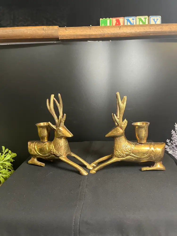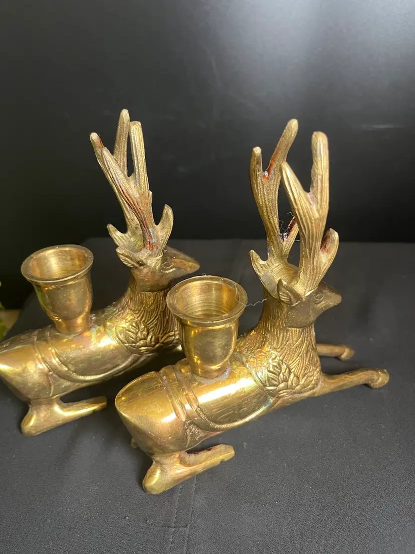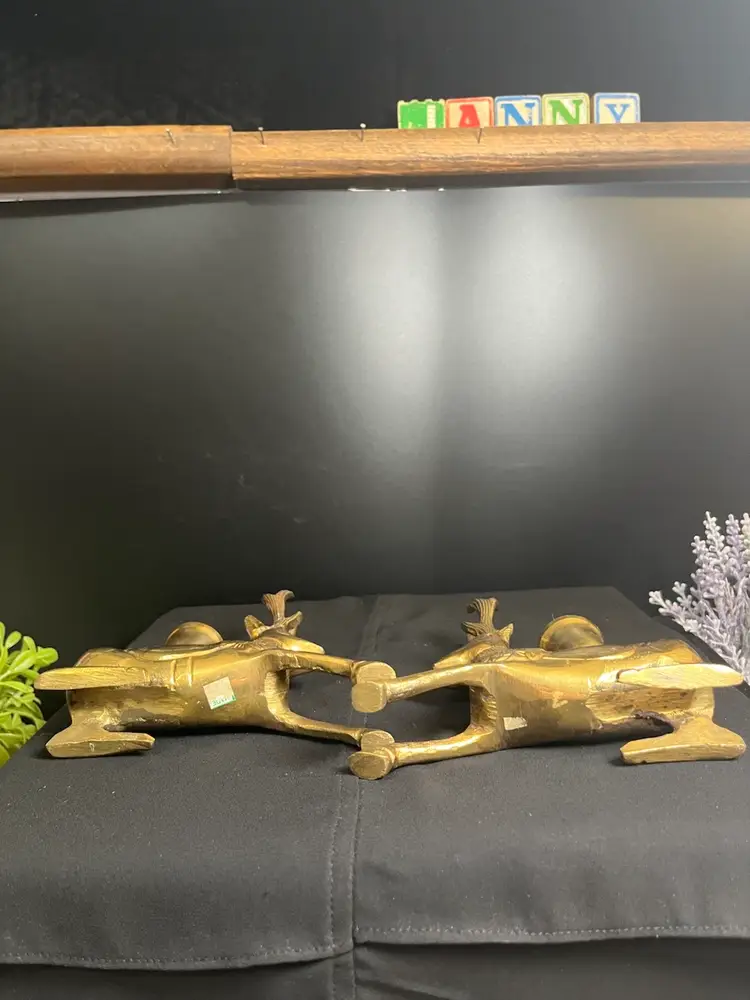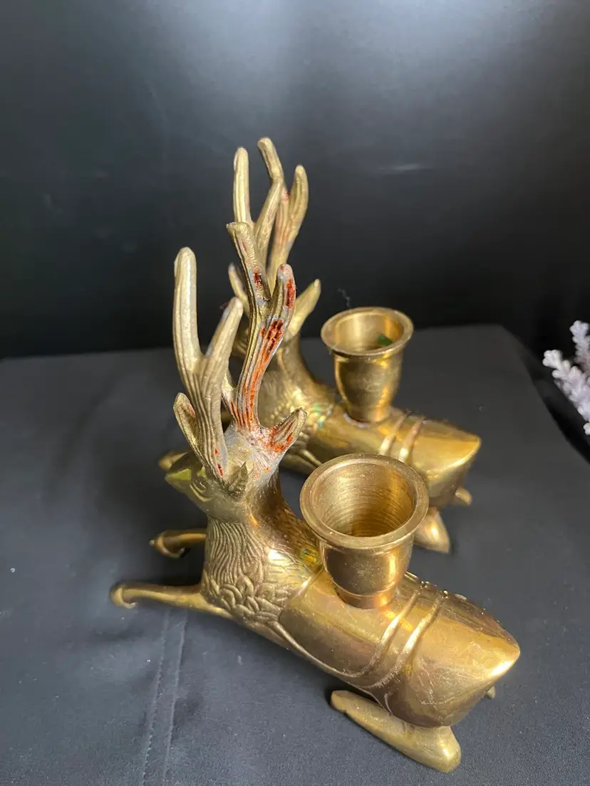 Beautiful. Would enhance any Vignette for Christmas. Has patina. No dents or scratches. They measure approx 5.75"H, 5.5"W, 1.75"Deep, Together weigh approx 2 Lbs. Because of weight will ship alone