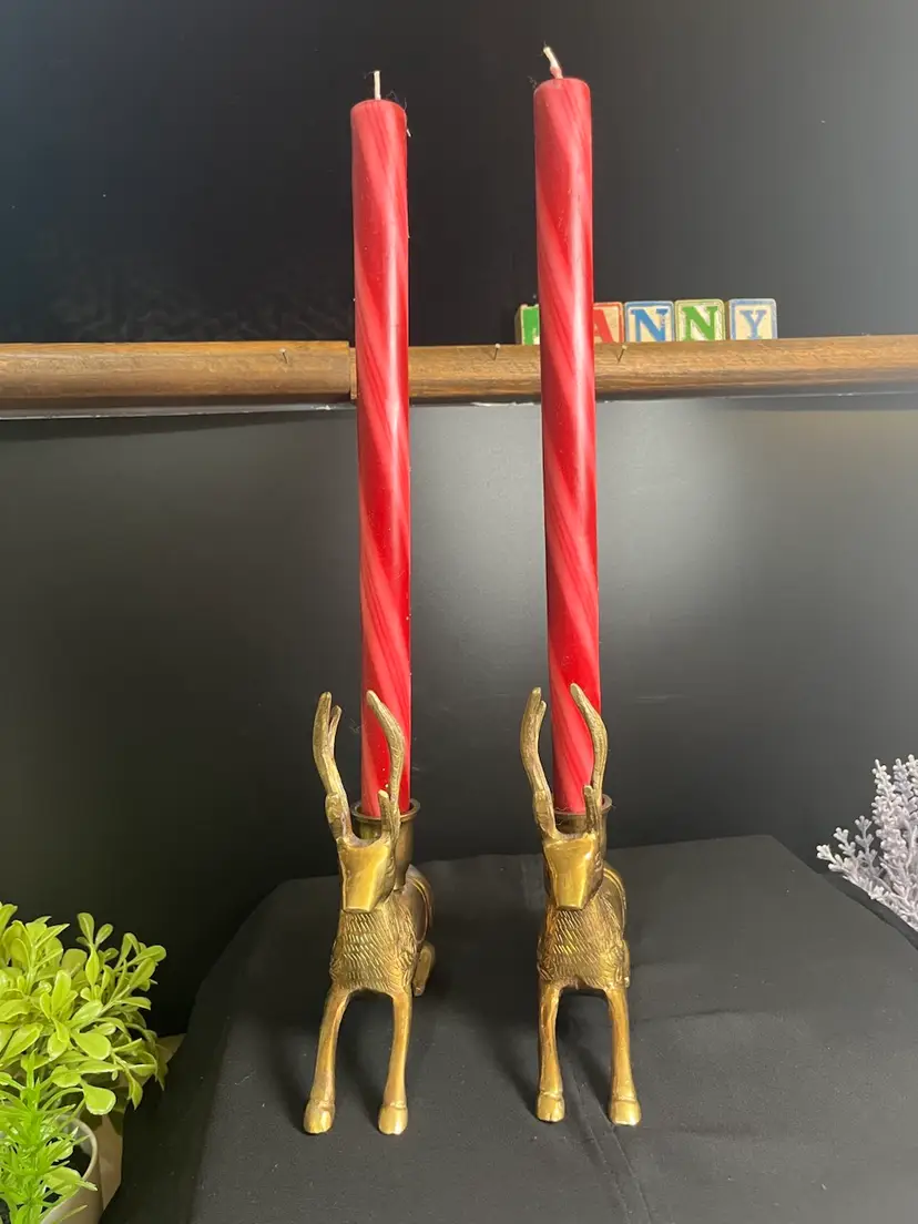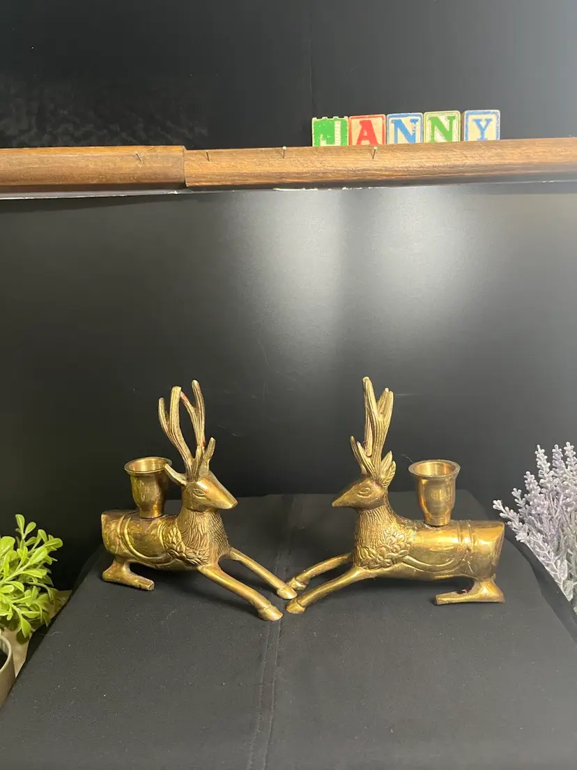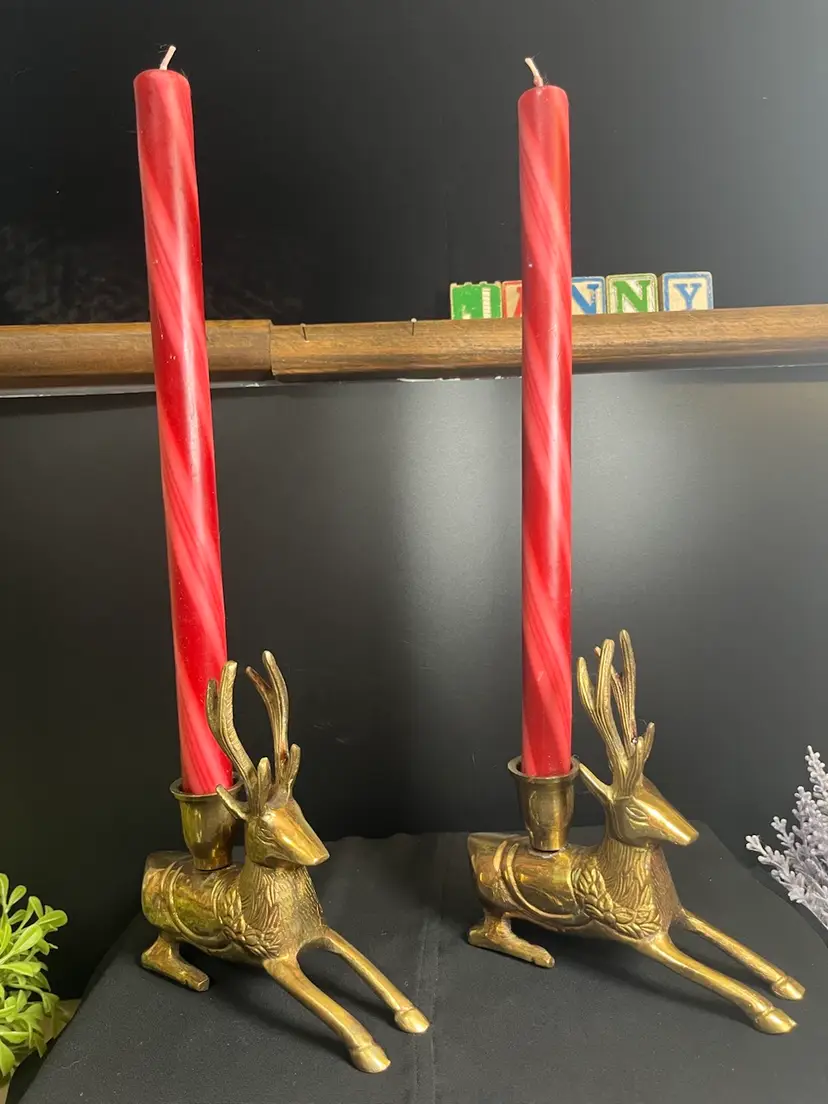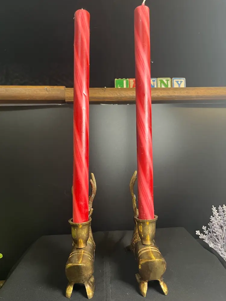 Beautiful. Would enhance any Vignette for Christmas. Has patina. No dents or scratches. They measure approx 5.75"H, 5.5"W, 1.75"Deep, Together weigh approx 2 Lbs. Because of weight will ship alone