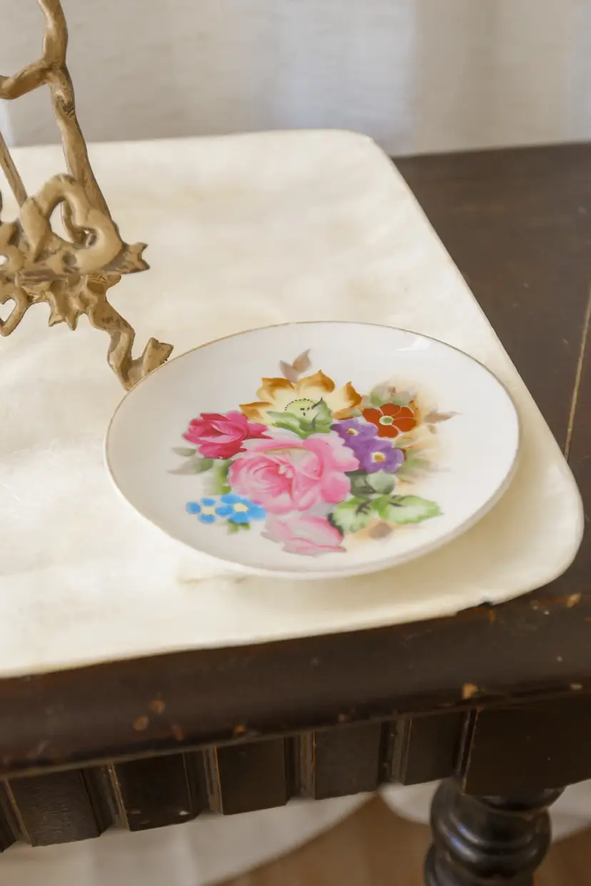 This vintage plate from Ucagco is a beautiful example of Japanese craftsmanship. The dish features hand-painted roses and other floral designs, making it a unique and eye-catching piece. It was made in Japan, and the quality shows in every detail. This plate is perfect for collectors or anyone who appreciates fine ceramics.