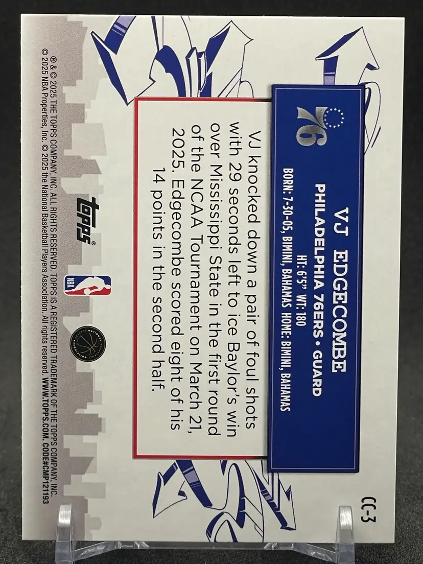 Item Description: VJ Edgecombe 2025-26 Topps Clutch City CC-3 (RC)