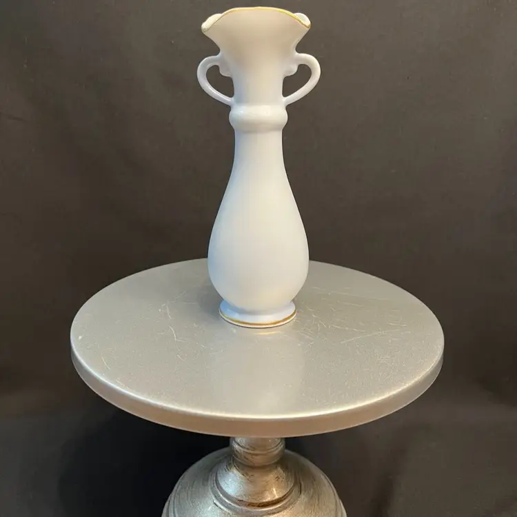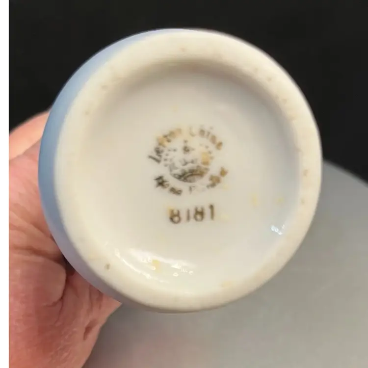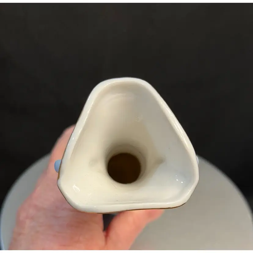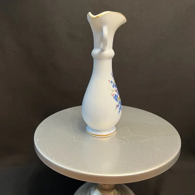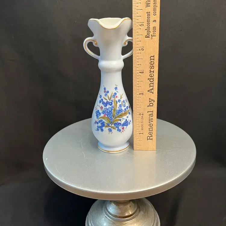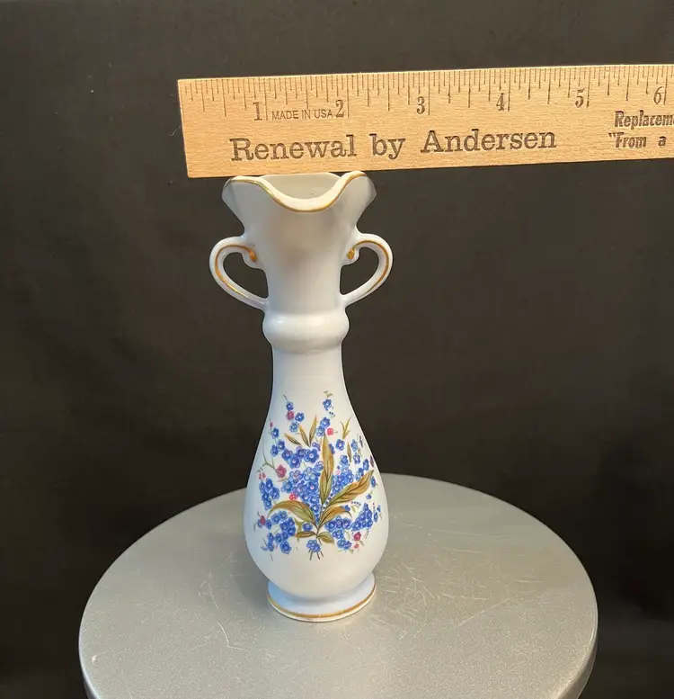 #314 Beautiful VTG Lefton China Blue Porcelain 6.25” Bud Vase With Blue Florals and gold trim.