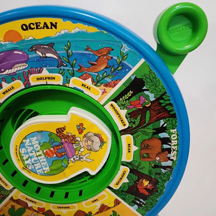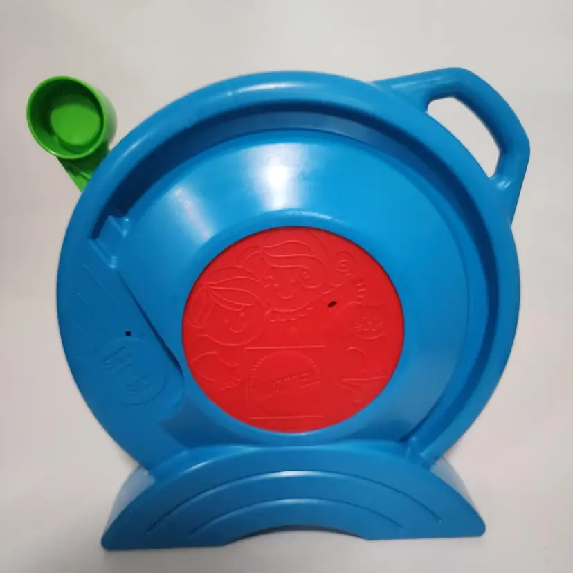 This vintage toy is in good condition and works great. Some of the decal sticker on the front has been worn away from use.