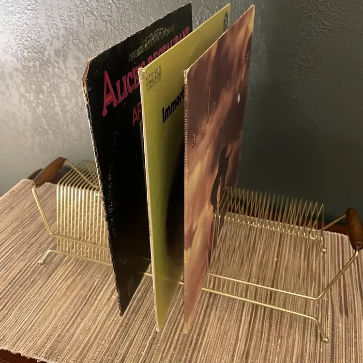 Will hold 60 albums. Great used vintage condition. A very cool find !
