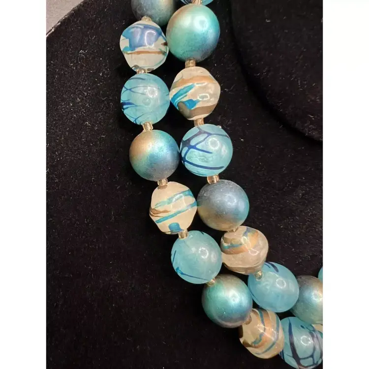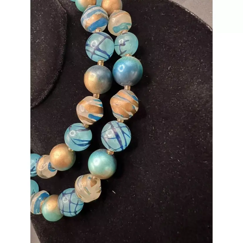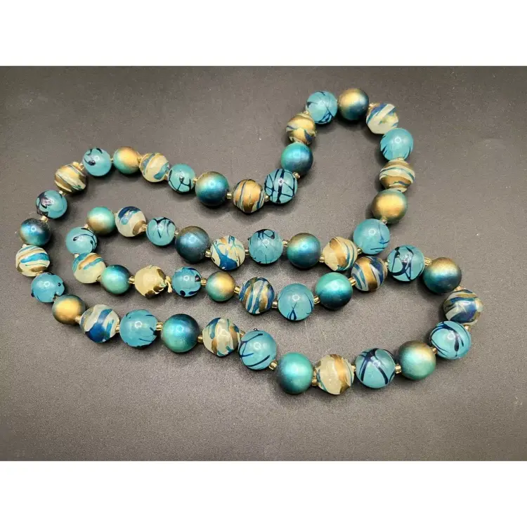Blue & Gold Glass Beads Hand Painted Mid Century Modern GORGEOUS! Great Estate Find!