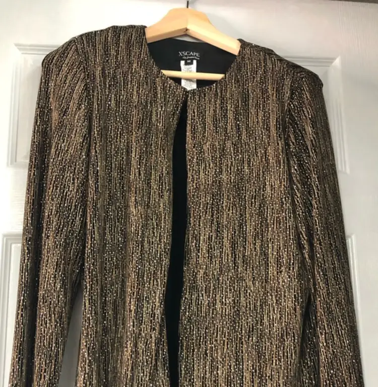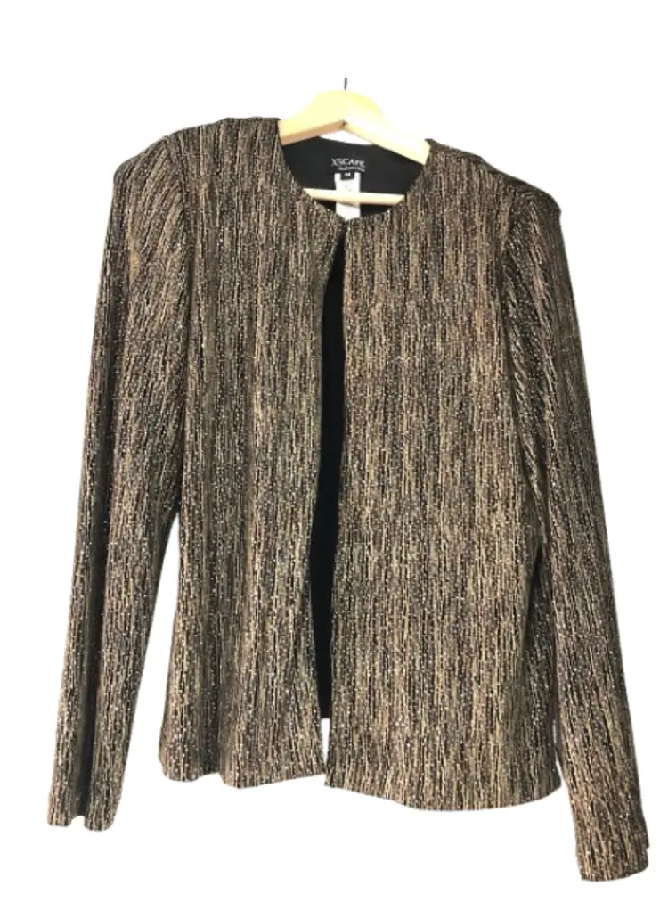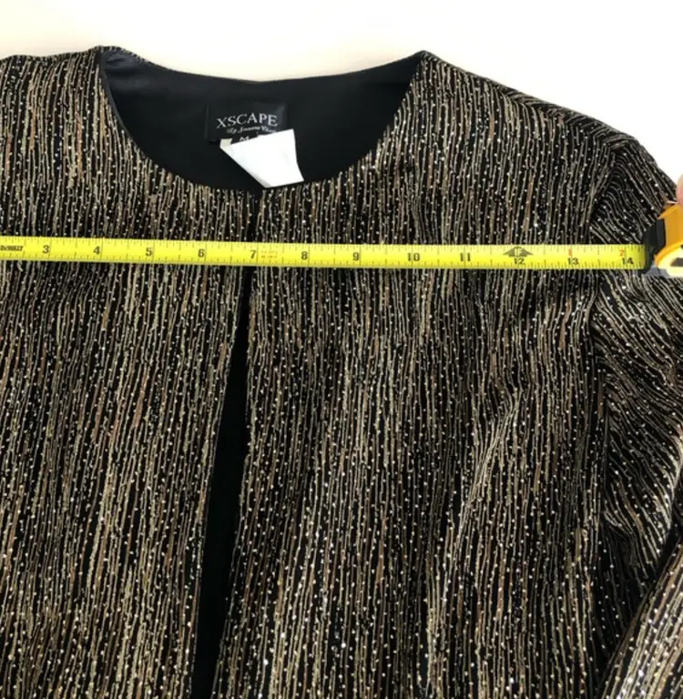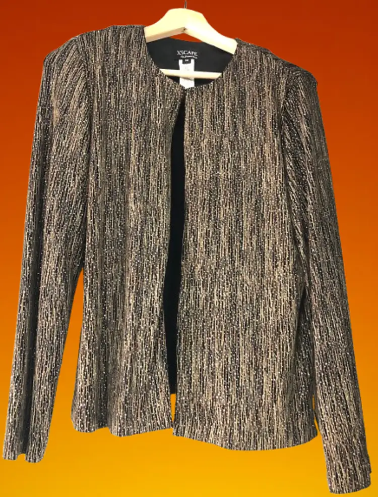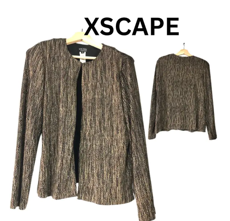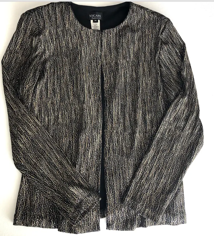 RN 105059 #XSCAPE #JoannaChen #EveningJacket #BlackGoldThreads #FormalWear #SizeM #PreOwnedFashion #DesignerJacket