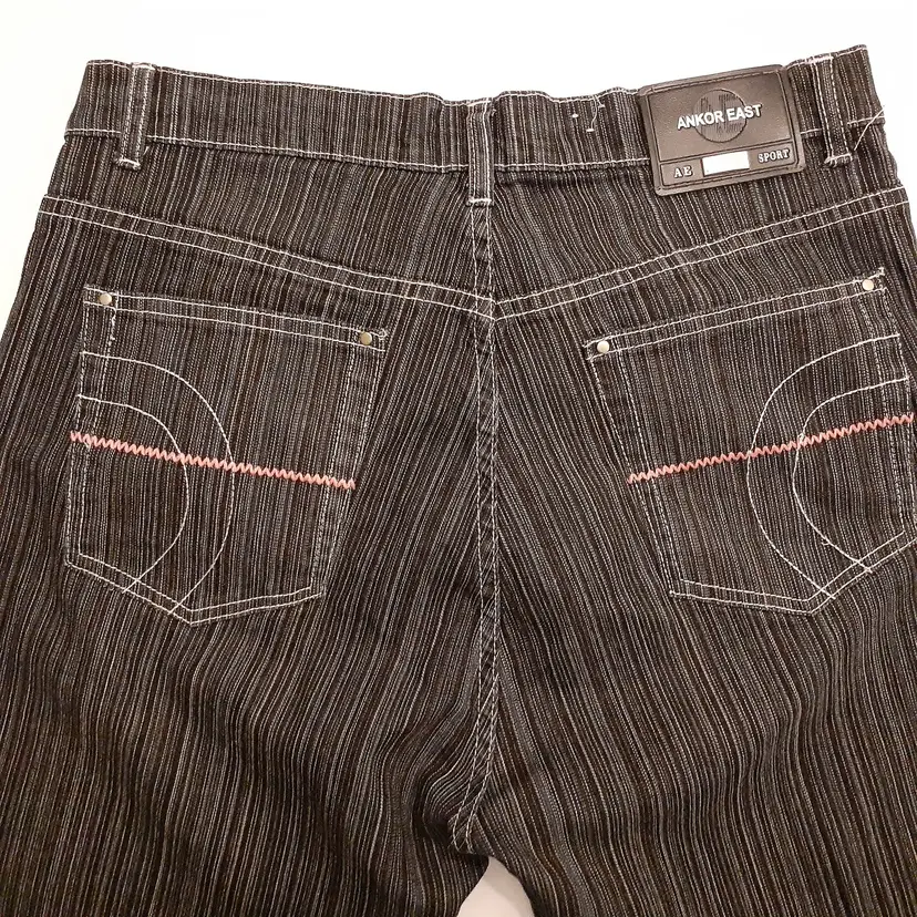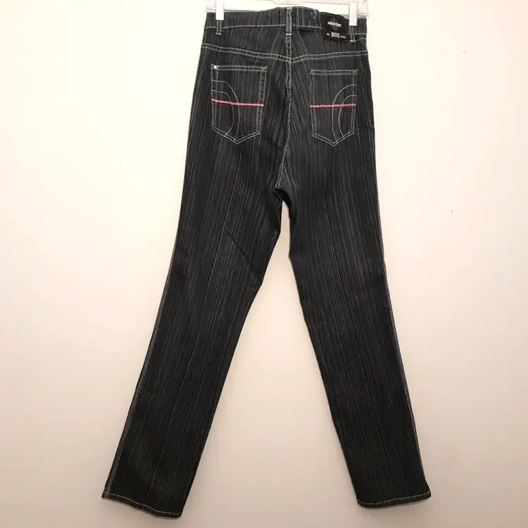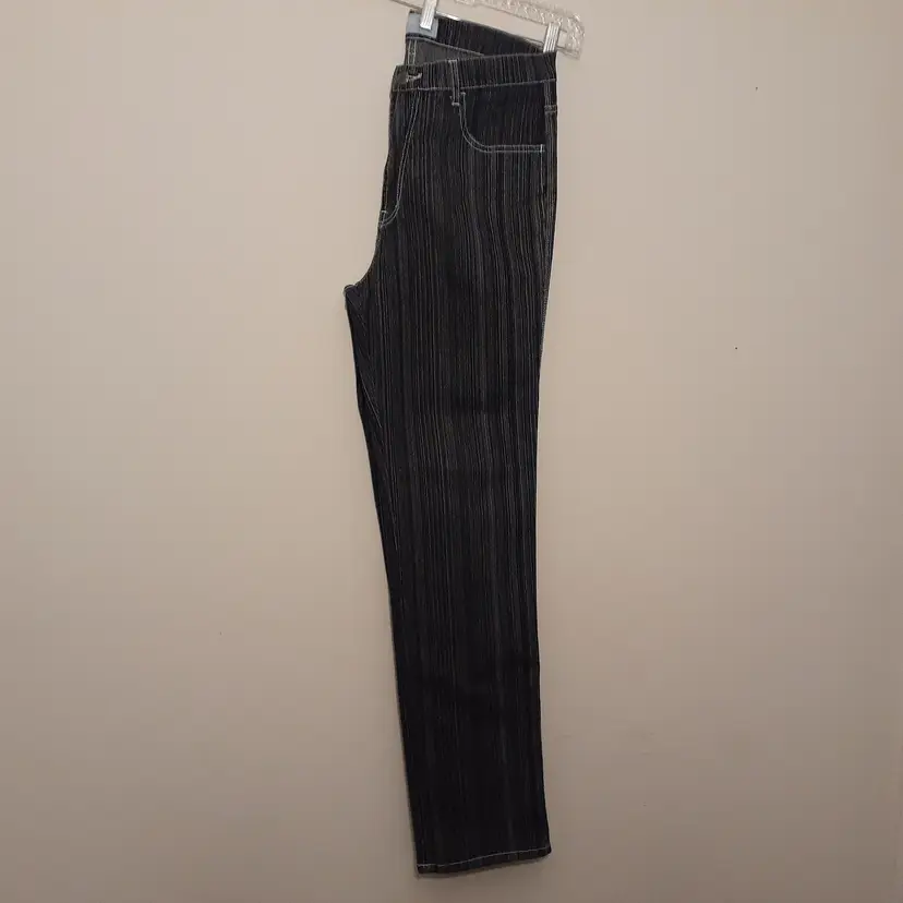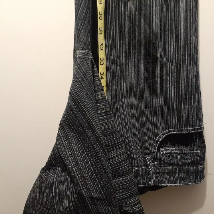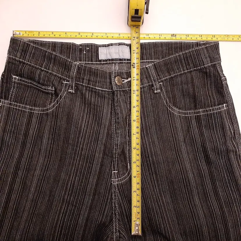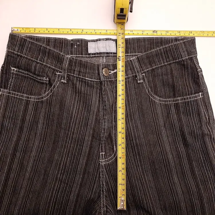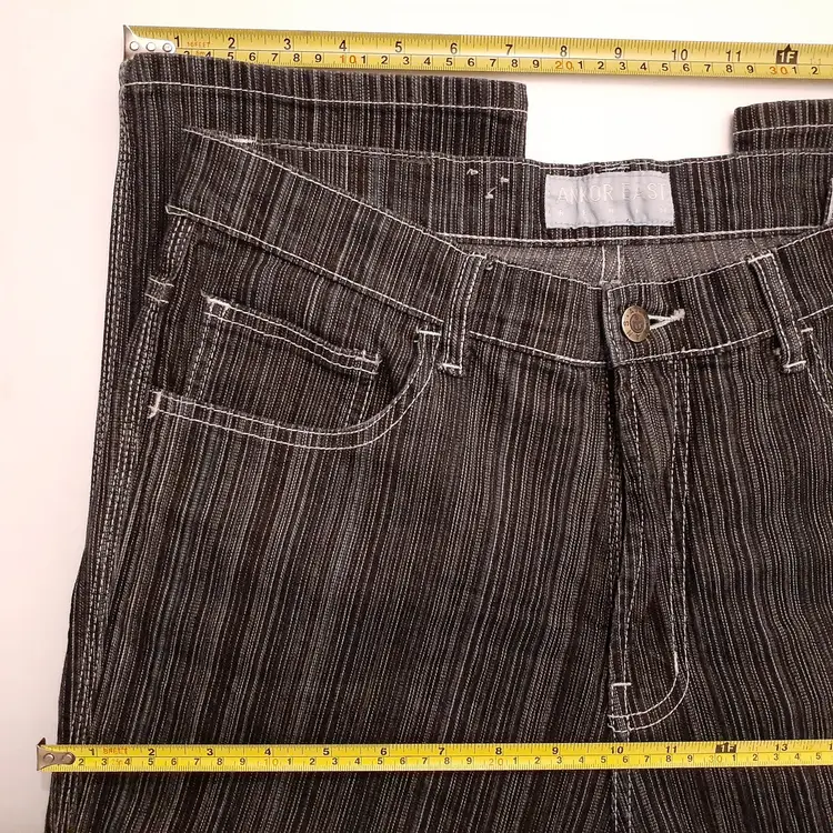ANKOR EAST womens jeans 13/14x32 dark blue striped high rise waist stretch sport pants ramie cotton poly spandex blend see photos for flat lay measurements good pre-loved condition