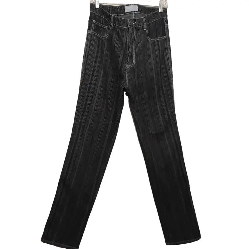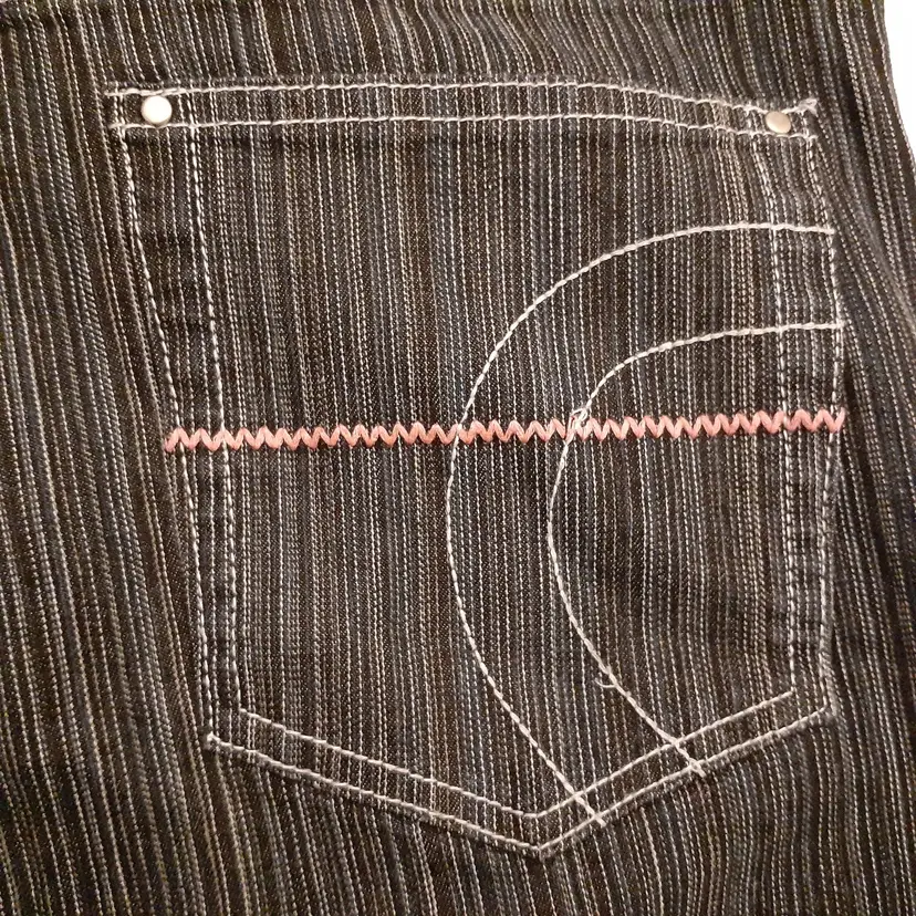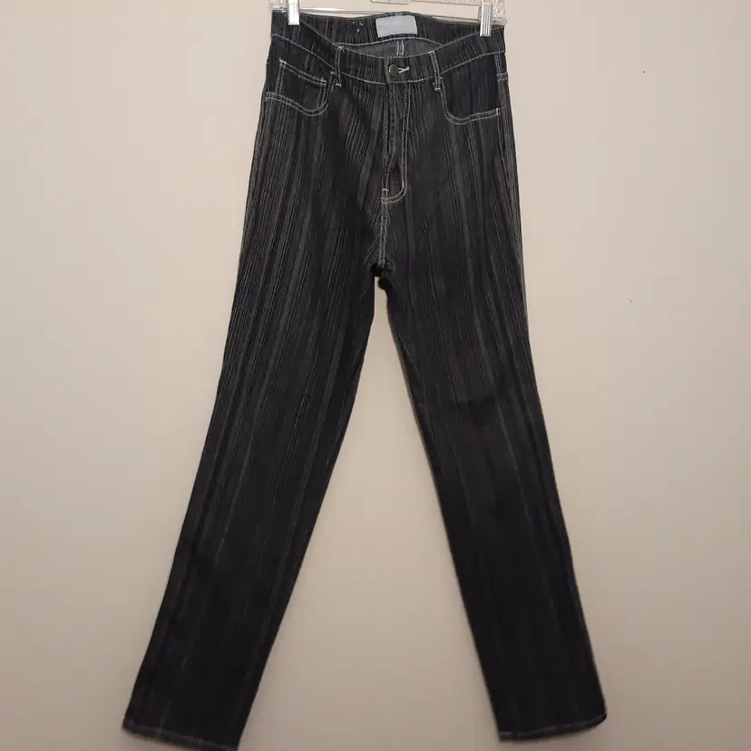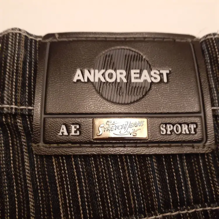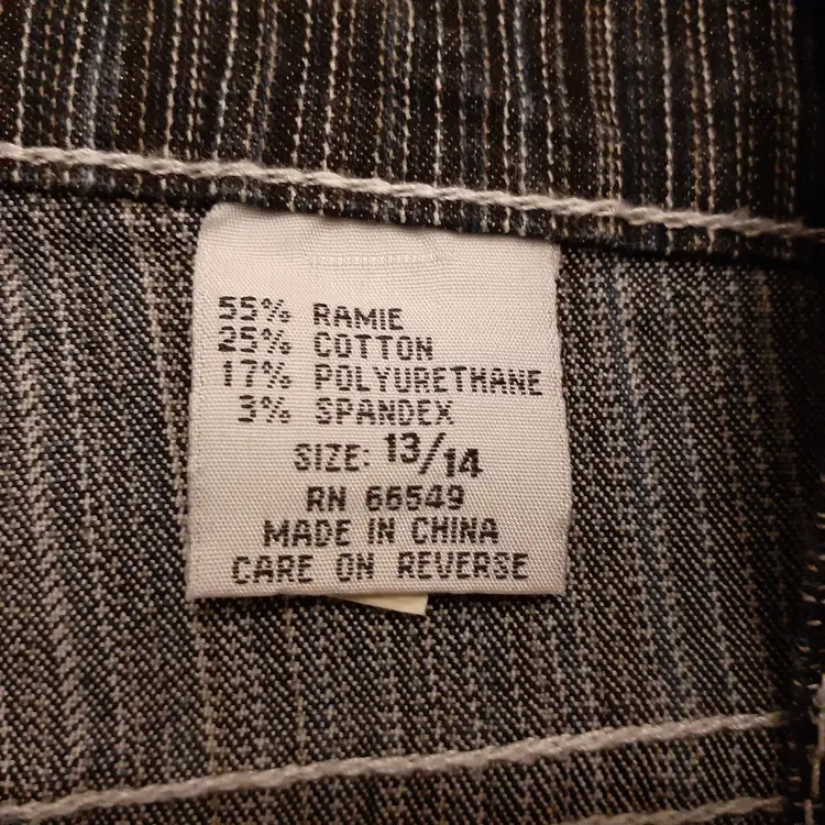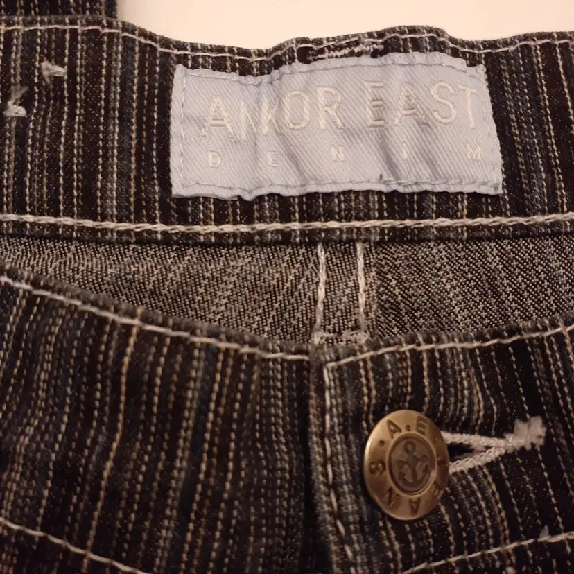 ANKOR EAST womens jeans 13/14x32 dark blue striped high rise waist stretch sport pants ramie cotton poly spandex blend see photos for flat lay measurements good pre-loved condition
