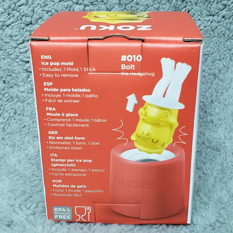 ZOKU Yellow Hedgehog Bolt Ice Pop Molds. BPA-free silicone ice pop molds create a single 1.4 fluid ounces.