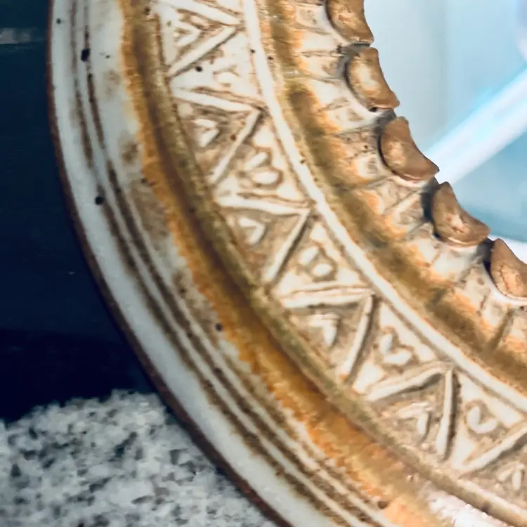 Amazing find ! No chip or cracks Approximately 10” Felted back