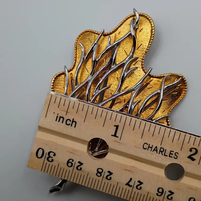 Title: Vintage Coro Leaf Brooch – Gold Tone with Silver Branch Overlay – Signed