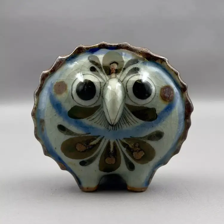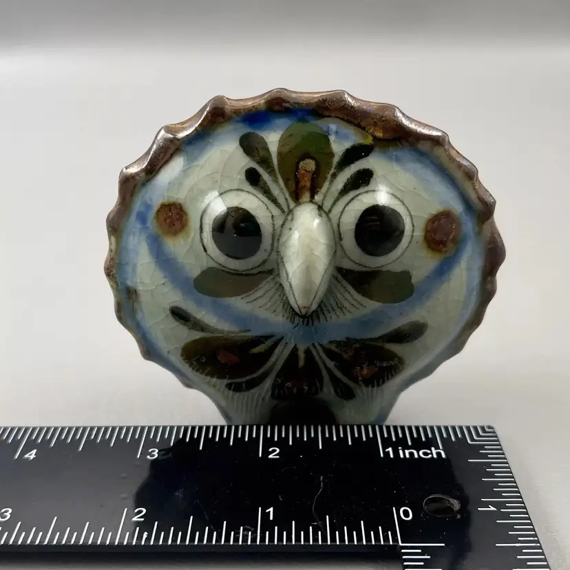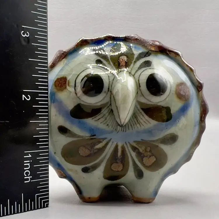 Vintage Tonala Owl Figurine 3" Mexico Mexican Pottery Signed Jorge Wilmot