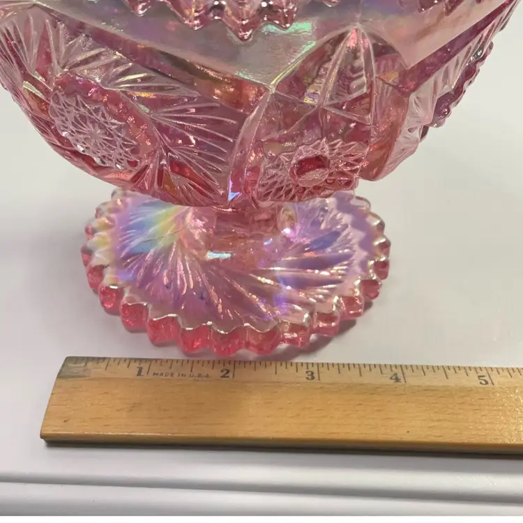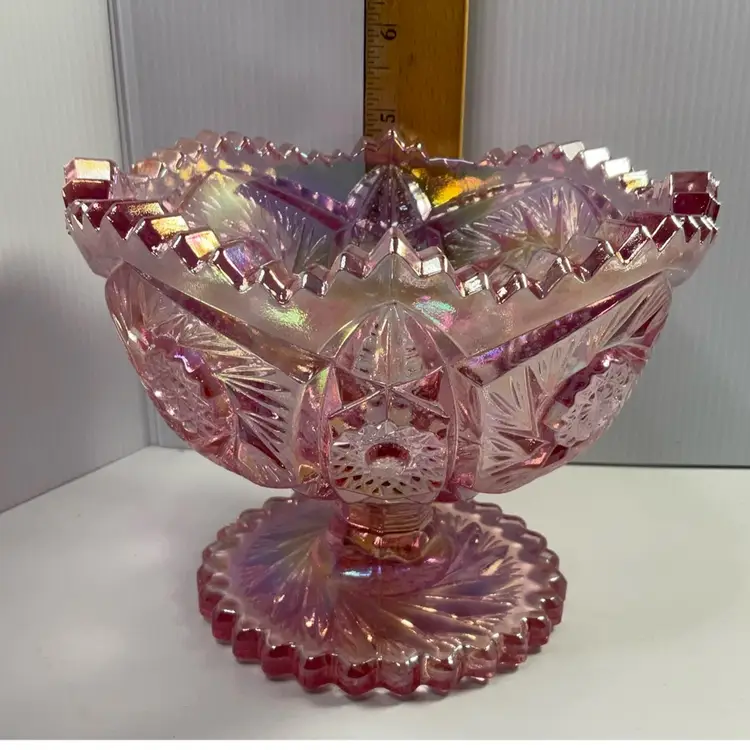 As shown. No chips or cracks. May show straw marks. Almost 5 inches tall 6 inches across the top. 4 inches across the base