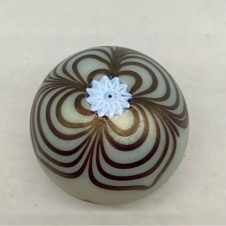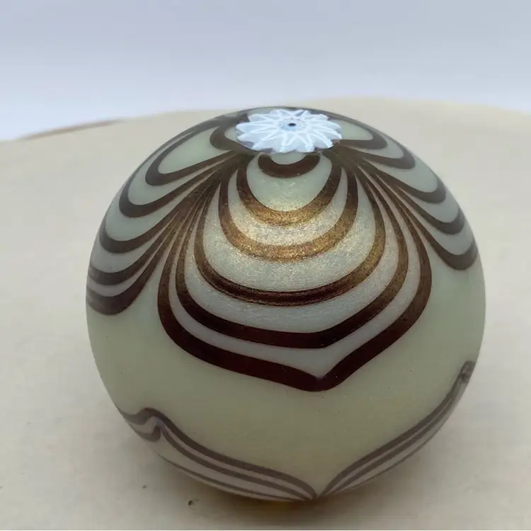 Pulled feather designs, like the one seen in this paperweight, are a classic Murano technique. This involves manipulating molten glass with specialized tools to create delicate, feather-like patterns. The millefiori technique, which incorporates small, colorful glass pieces into the design, adds another layer of complexity and beauty to these art pieces.