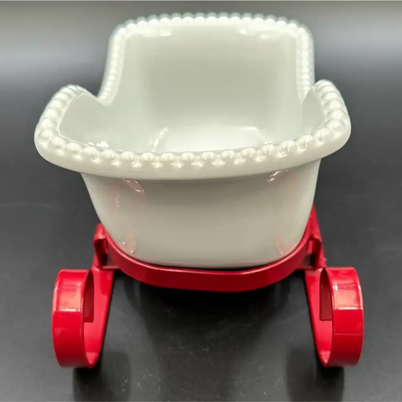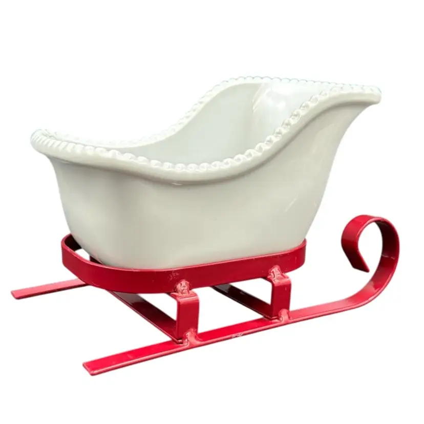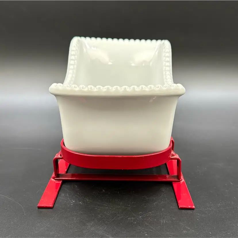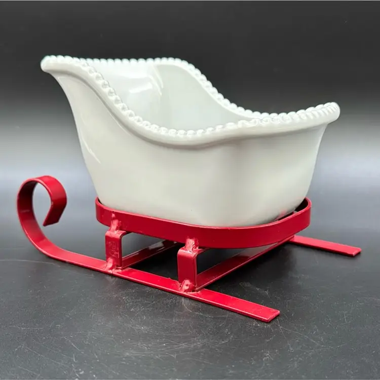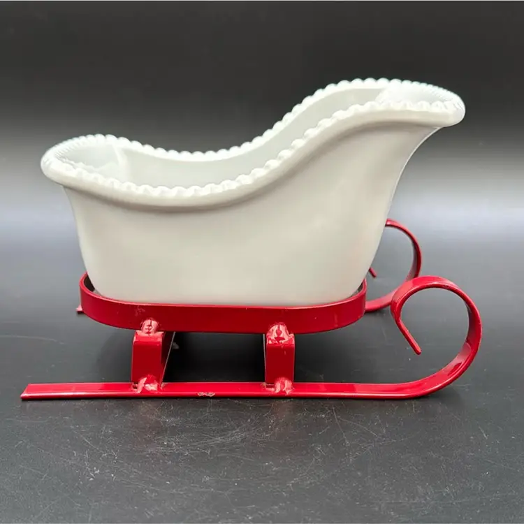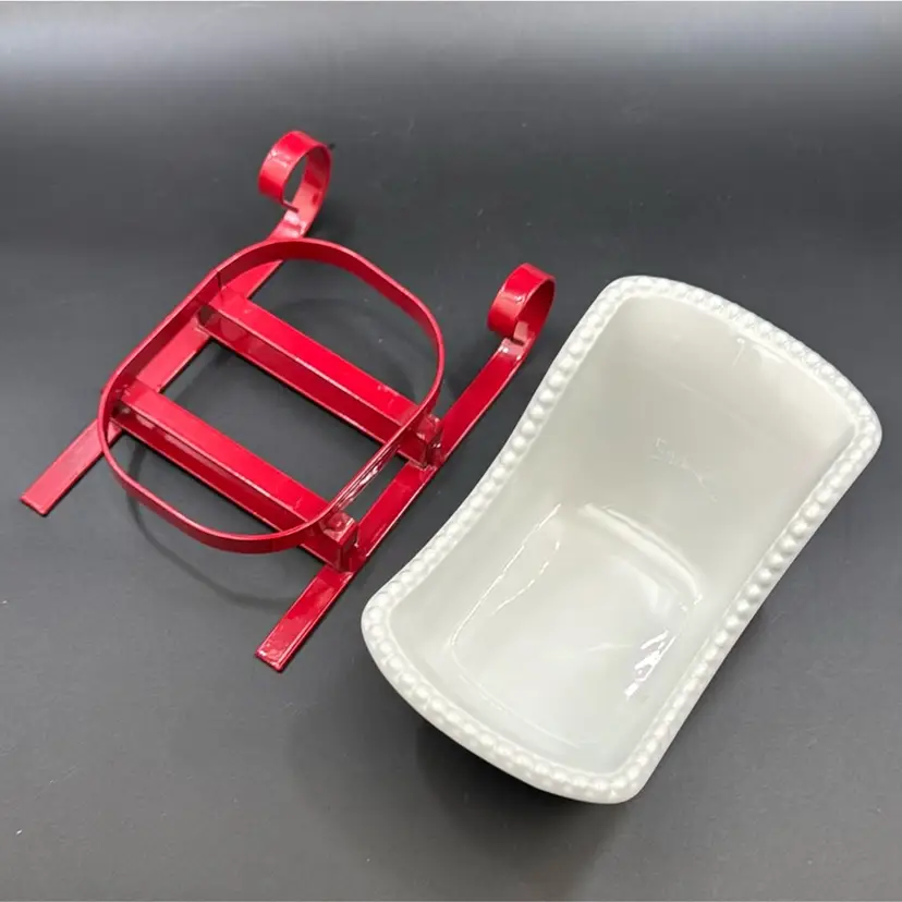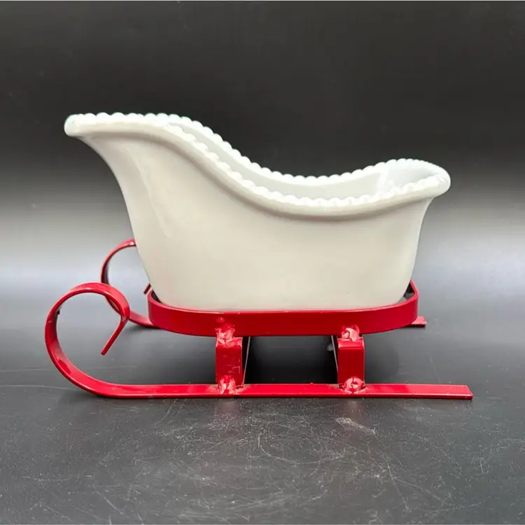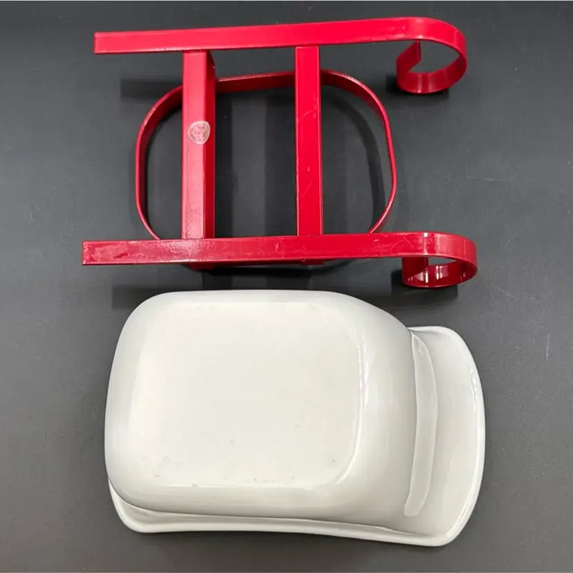 White porcelain sleigh 7”D the slave frame 71/2”D 5”W has makers mark sticker