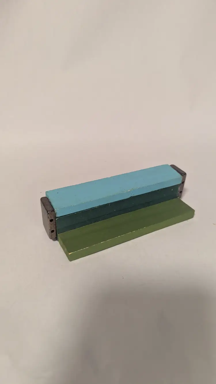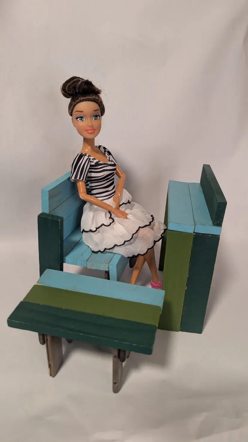 These handmade toy doll furniture pieces are made from recycled blocks. You get coordinated wooden pieces that are suitable for 11.5" dolls. The blocks are used and irregular. The bright colors are cute and fun!