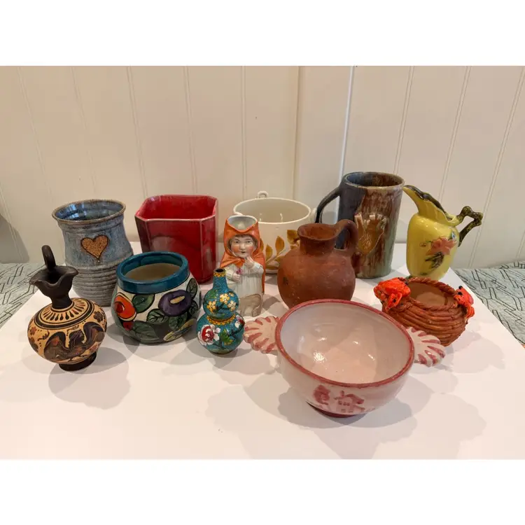 I love pottery, glass, minis + small figurines, vintage plastics like celluloid, bakelite, and lucite, old old jewelry, and anything that can be turned into a planter! My Niknax and house plant obsession definitely go hand in hand. πŸ˜†πŸ’šπŸͺ΄