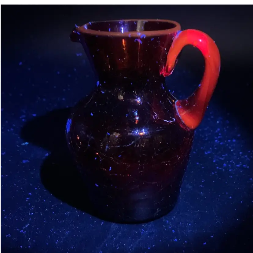 Measures 3.75” tall, 2.5” diameter and 3” with handle. Note there is a rough area to the touch where handle attaches to the top. A couple of the crackles are deep. See pics through loupe.