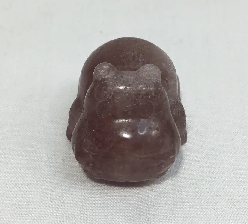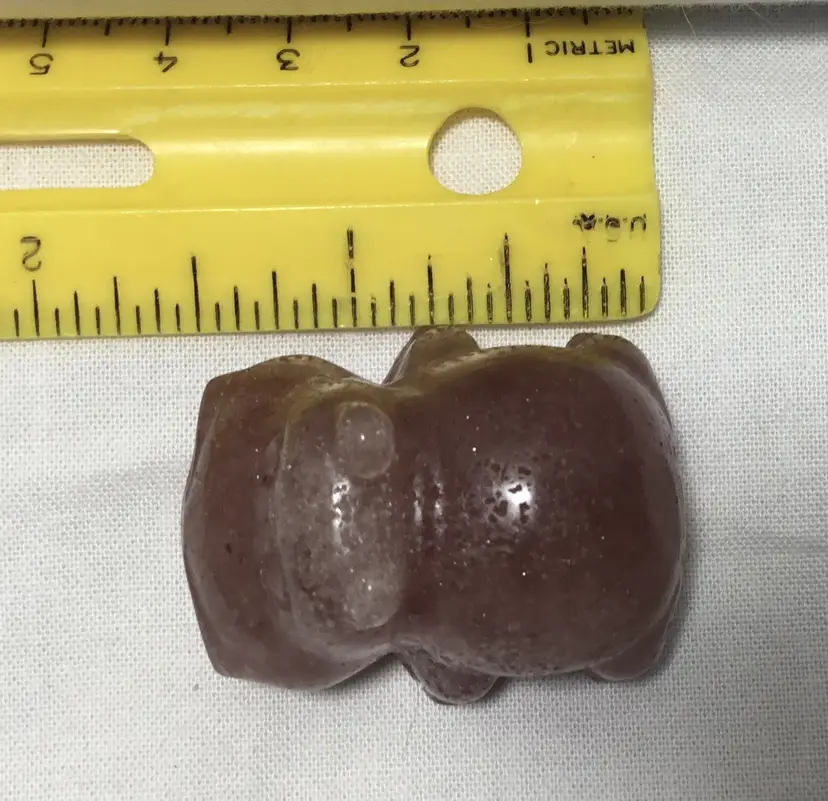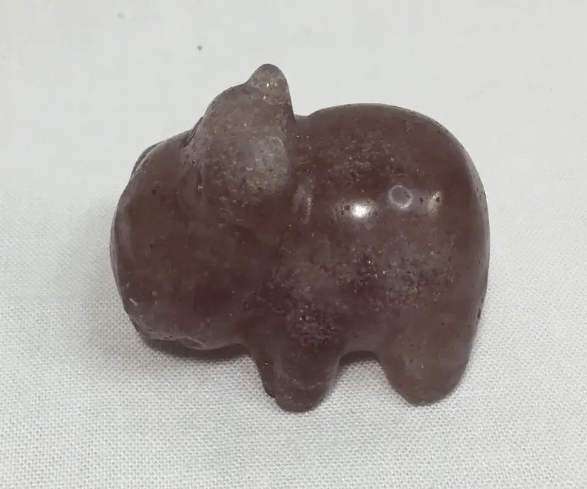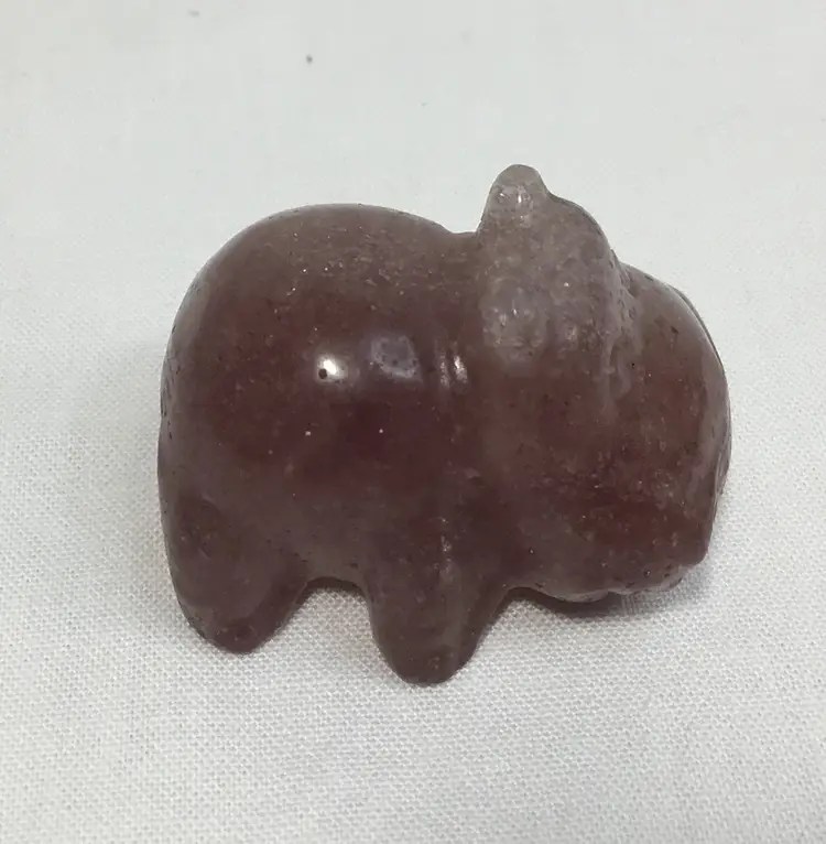 Small, dark rose quartz carved hippo figurine. 1.5 inches long by 1/2 inch wide. Slightly pitted all over. See all photos.
