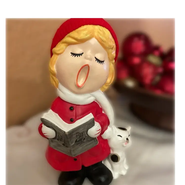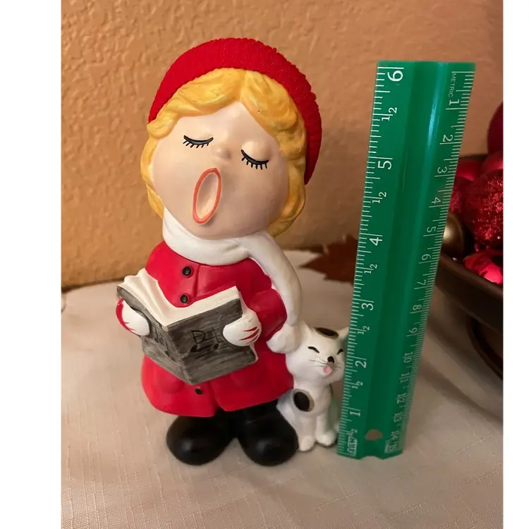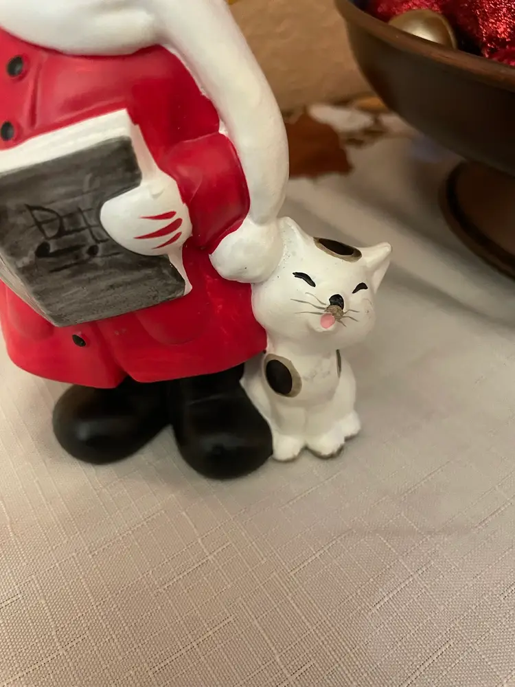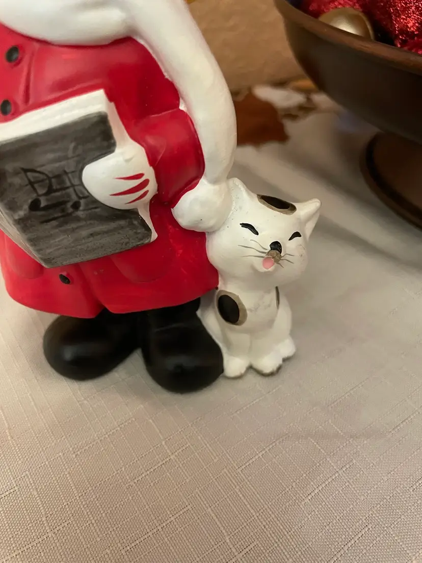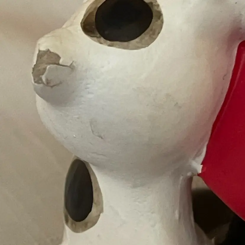 Kitty has a paint chip behind his ear . Not noticeable from the front. Lovely vintage condition otherwise.