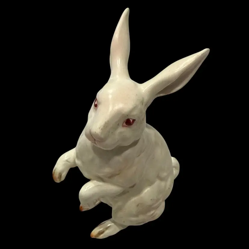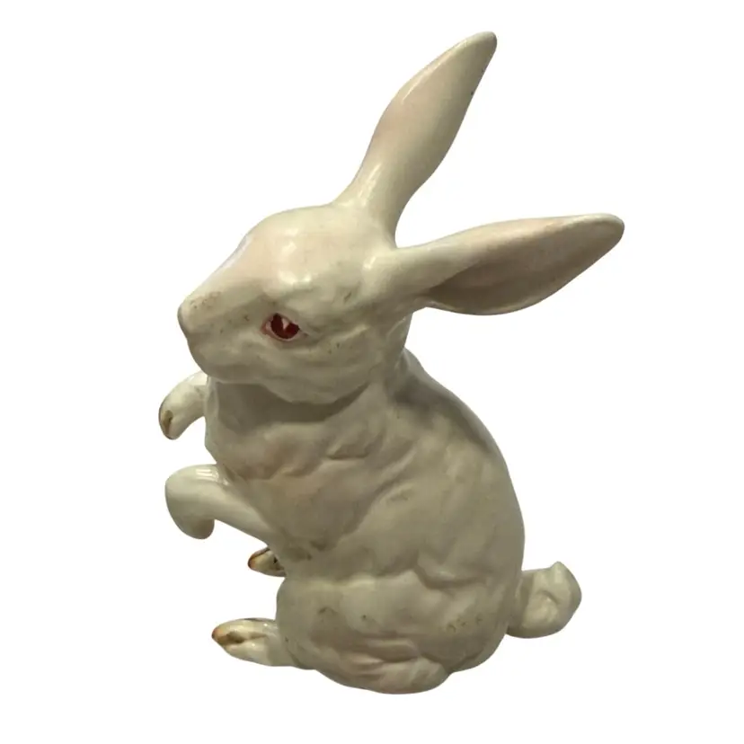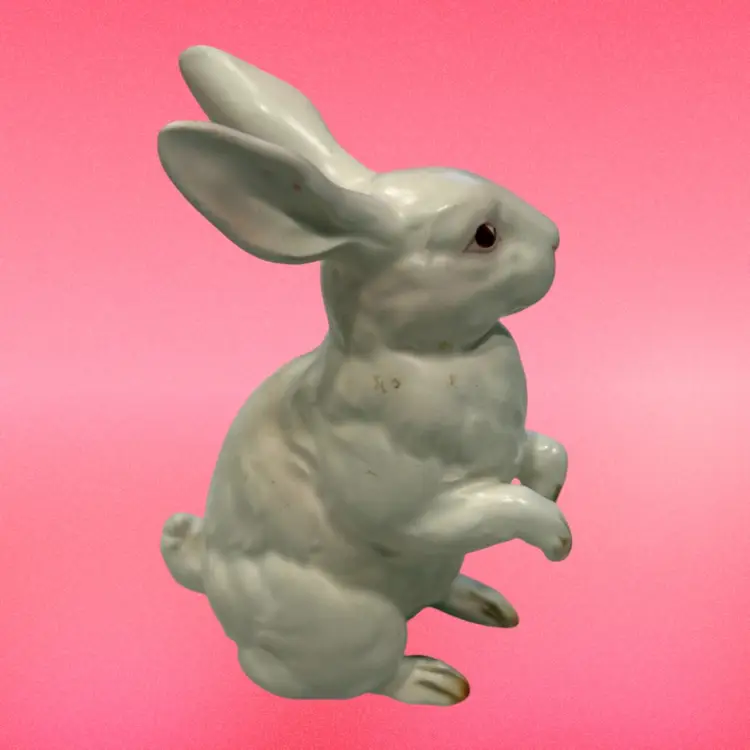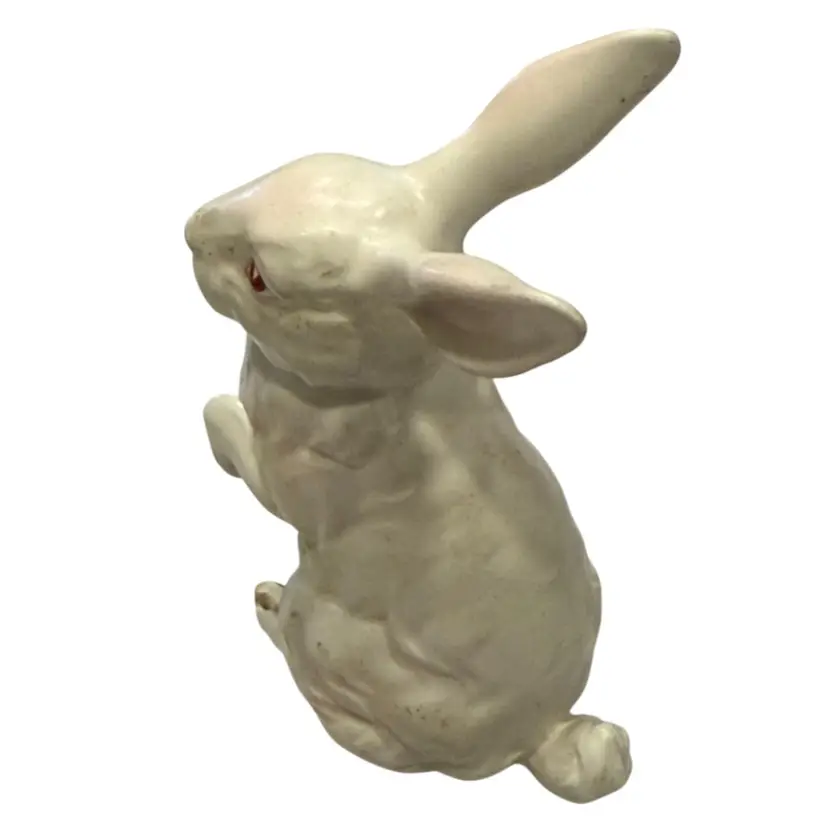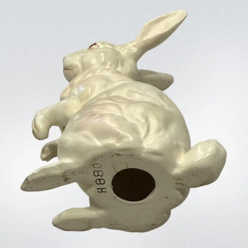 This Lefton bunny is perfect for celebrating Easter or Spring. Also perfect for your farmhouse decor. Vintage from (1950's - 60's) each was hand painted giving them their own "personality". This white, pink eyed, Albino rabbit is sitting up on his haunches and is about 4.5" tall and 3.5" wide. He is in Excellent vintage condition with no chips or cracks noted. This bunny has his identifying numbers (H880) on the underside.