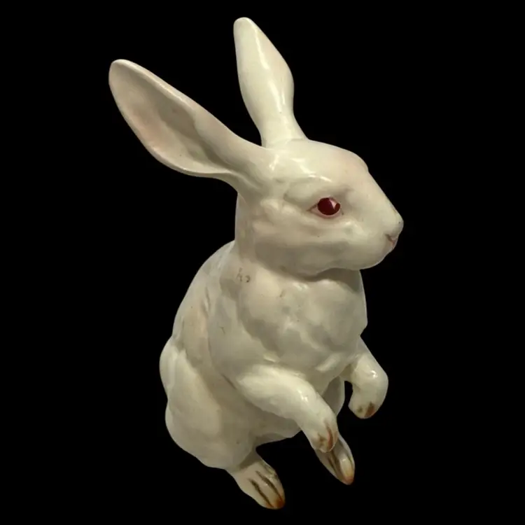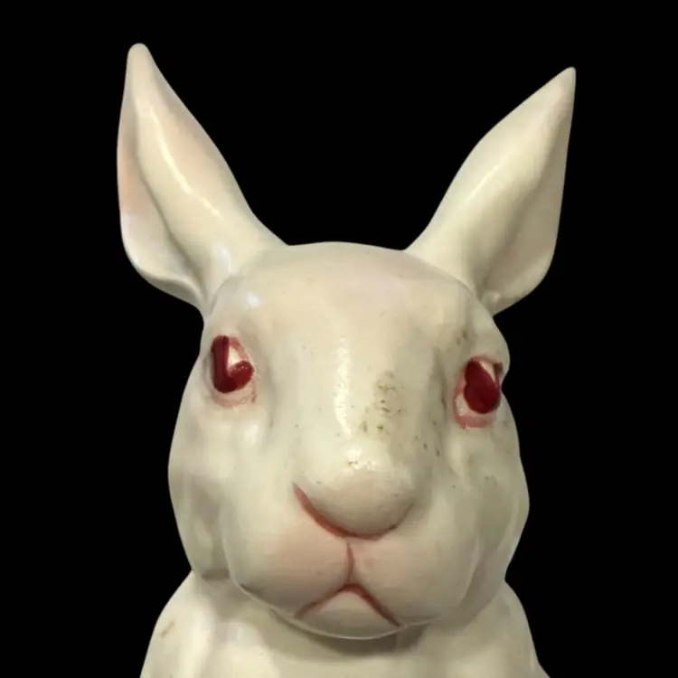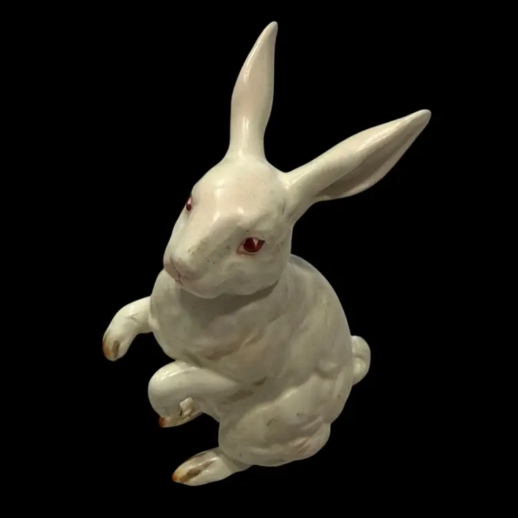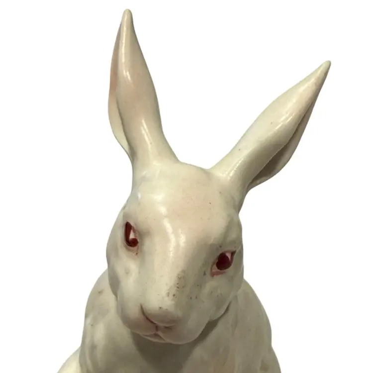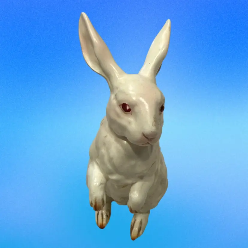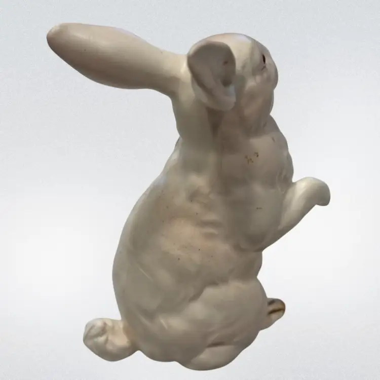 This Lefton bunny is perfect for celebrating Easter or Spring. Also perfect for your farmhouse decor. Vintage from (1950's - 60's) each was hand painted giving them their own "personality". This white, pink eyed, Albino rabbit is sitting up on his haunches and is about 4.5" tall and 3.5" wide. He is in Excellent vintage condition with no chips or cracks noted. This bunny has his identifying numbers (H880) on the underside.