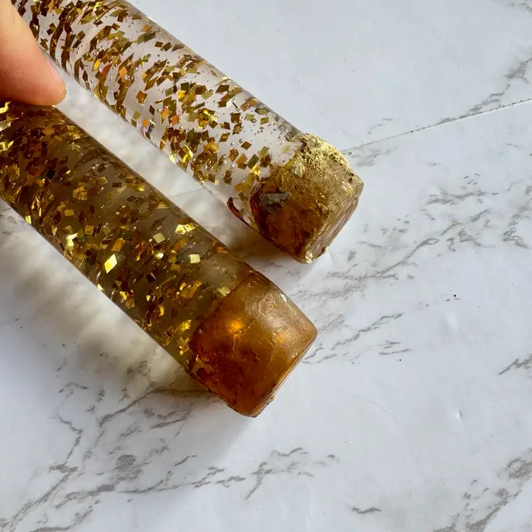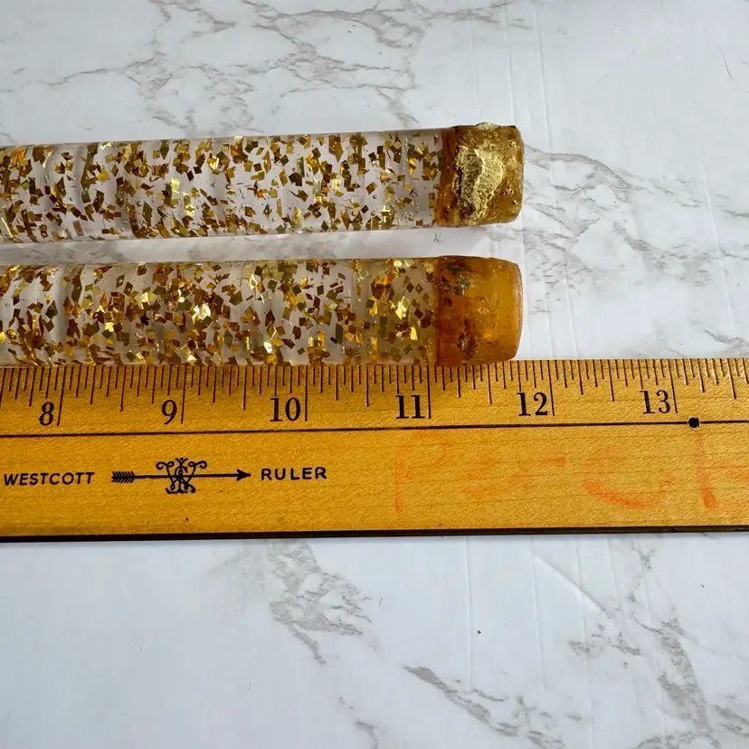 Wicks are present but tattered (burned?!), milky fluorescence under UV light, nearly 12” long