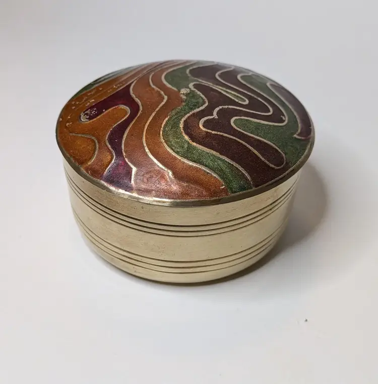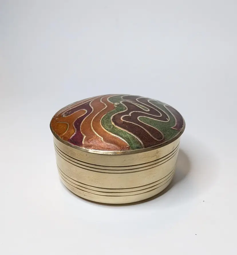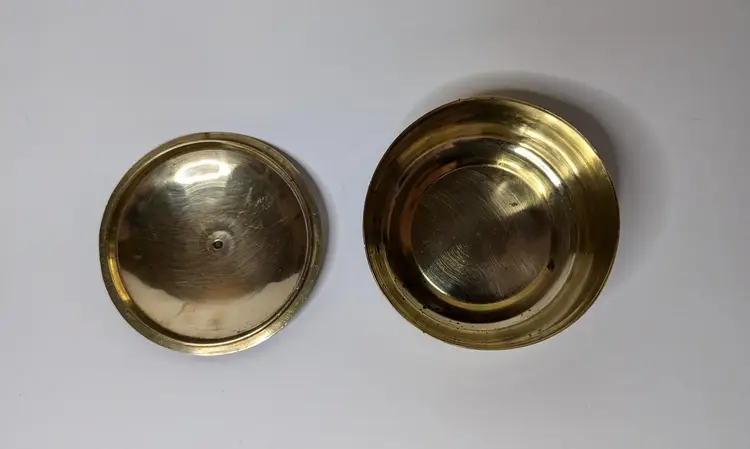 Crafted from high-quality brass, this box is both durable and stylish. It measures approximately 3 inches in diameter and 2 inches in height, making it the perfect size for a dresser or vanity. This trinket box would make a great gift for anyone who loves collecting unique items or appreciates the beauty of vintage décor.