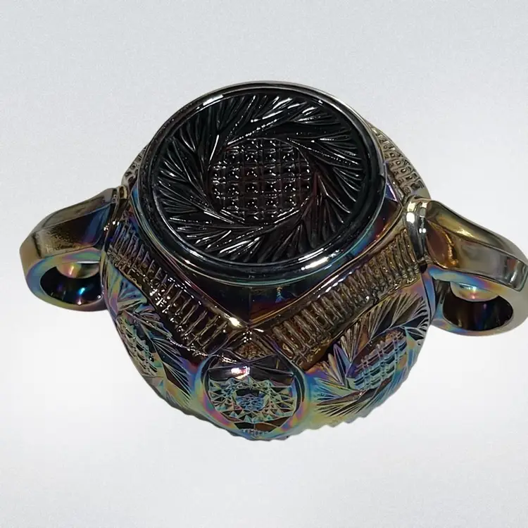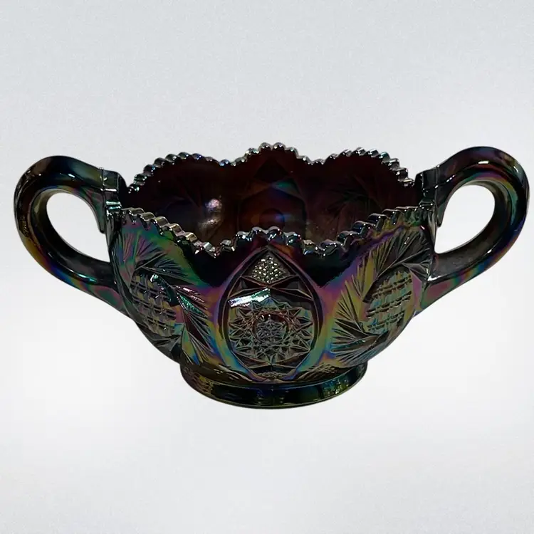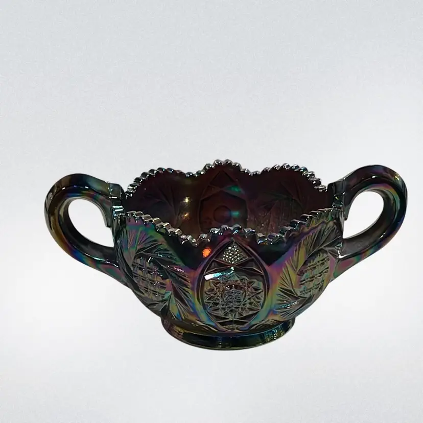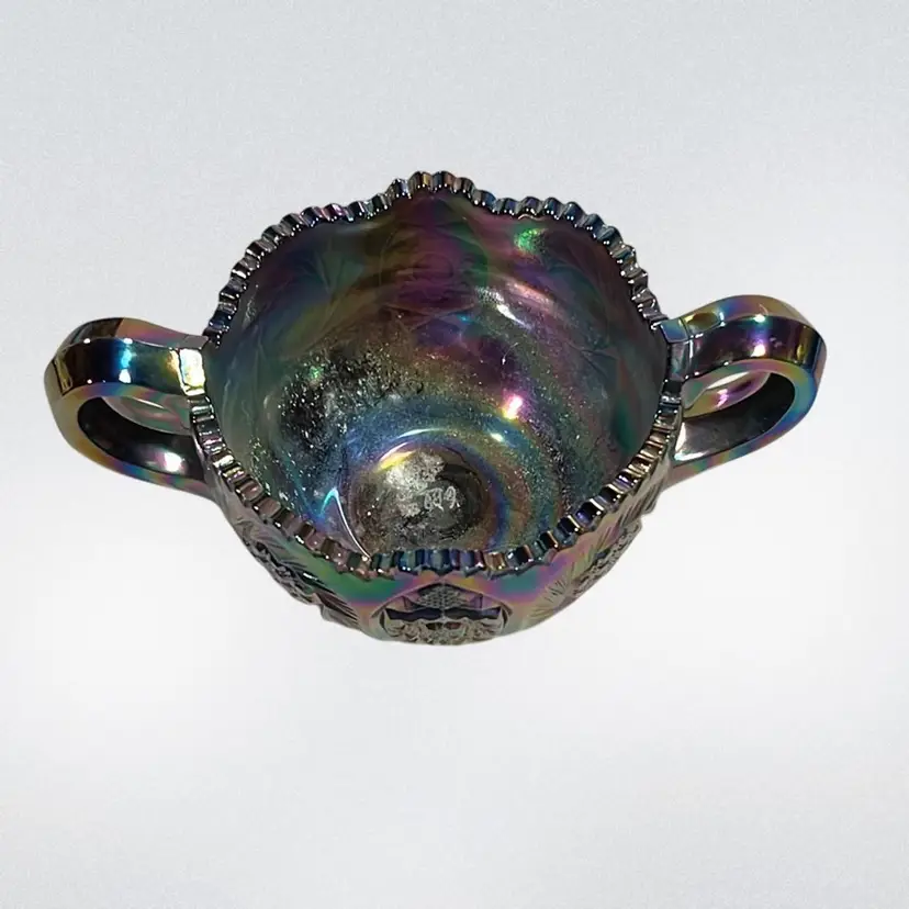 02a. Vintage LE Smith Amethyst Carnival Glass 6” Sugar Bowl with Handles