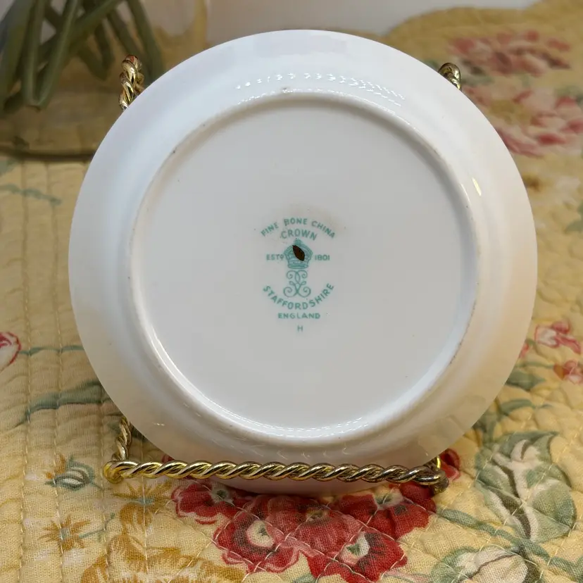 Crown Staffordshire was a Staffordshire pottery company with roots dating back to the mid-19th century, with its name first appearing in 1897. The company became known for producing high-quality bone china tableware and floral ornaments, eventually becoming part of the Wedgwood Group in 1973. Production under the Crown Staffordshire name continued until around 1985, when the name was discontinued.