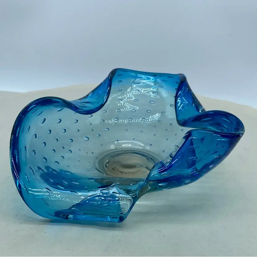 The technique of creating controlled bubble glass, where air bubbles are intentionally trapped within the glass, gained popularity in the mid-20th century. While Murano, Italy is famous for this technique (known as 'Bullicante'), other glassmakers around the world also adopted and adapted it. These pieces often showcase vibrant colors and unique forms, making them attractive decorative items.
