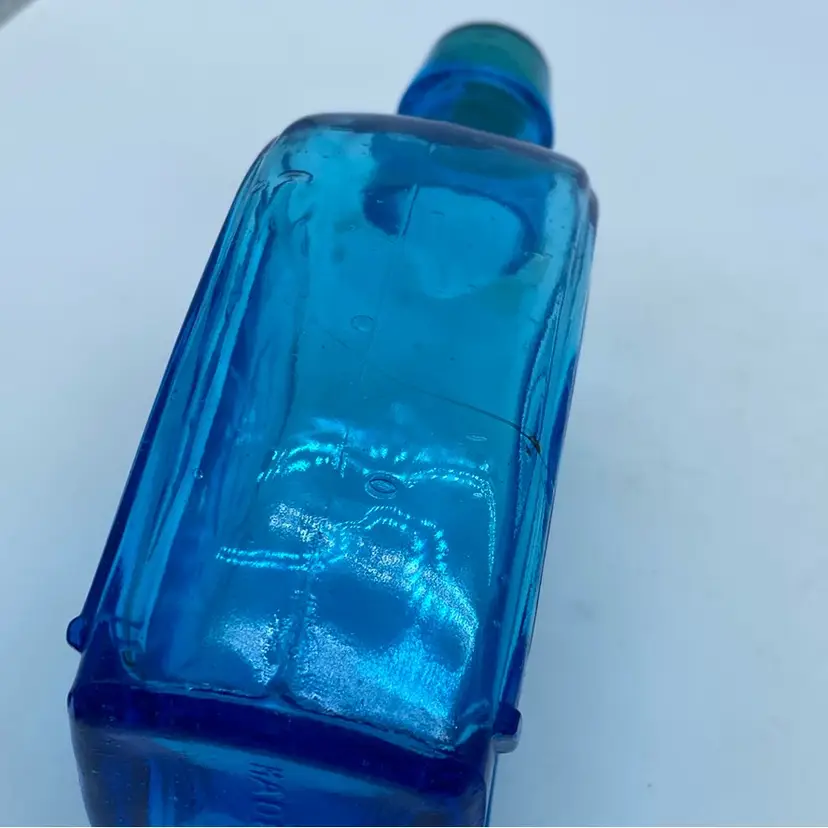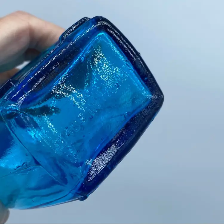 Blue glass, particularly cobalt blue, was a popular choice for these types of items due to its attractive color and lvalue. L