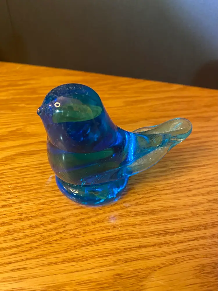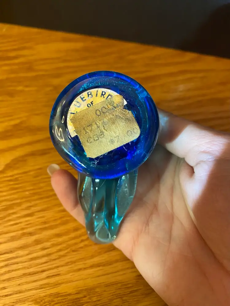 Blue Bird Of Happiness - Signed, But Sticker Is Covering - 3 1/2” X 1 15/16” Sticker is covering the signature, but you can see part of the signature. The bluebird of happiness has no chips and cracks in and is in condition.