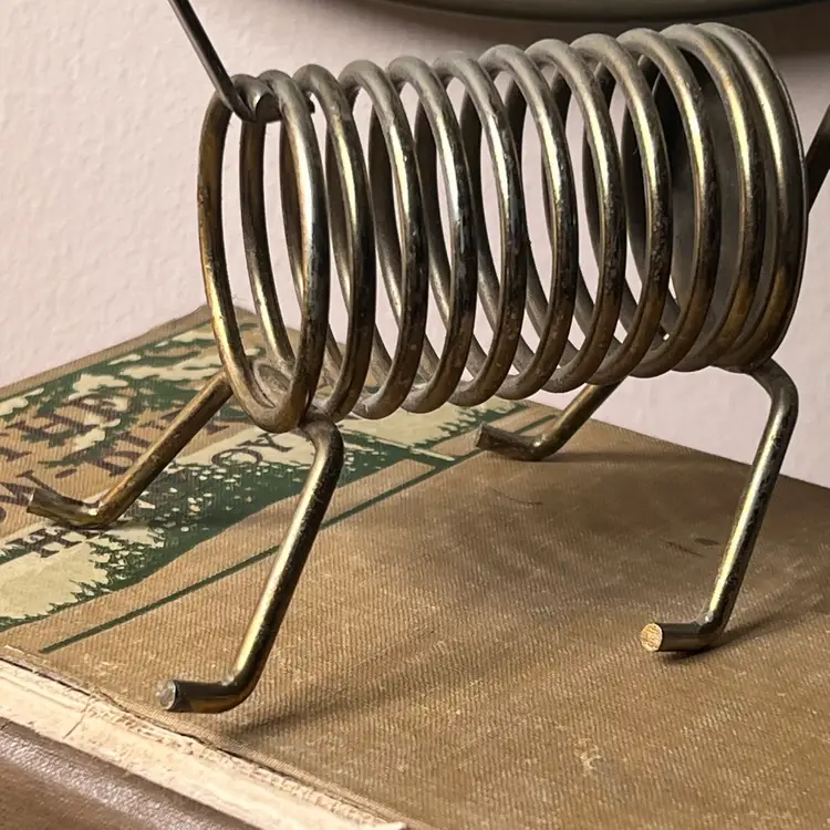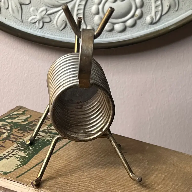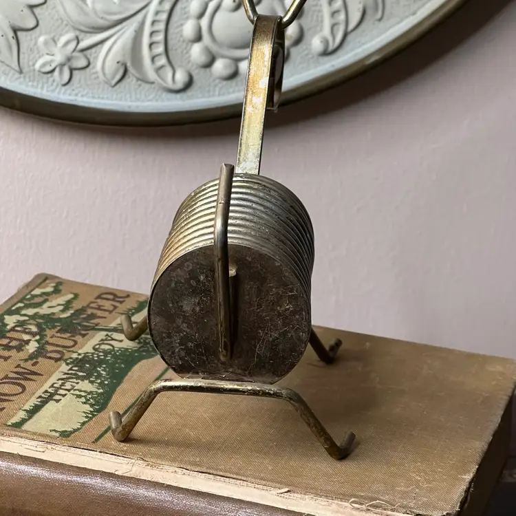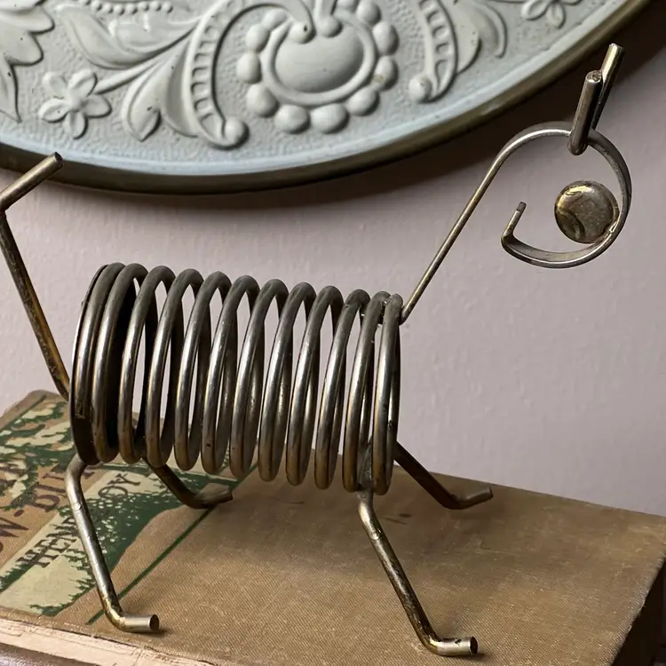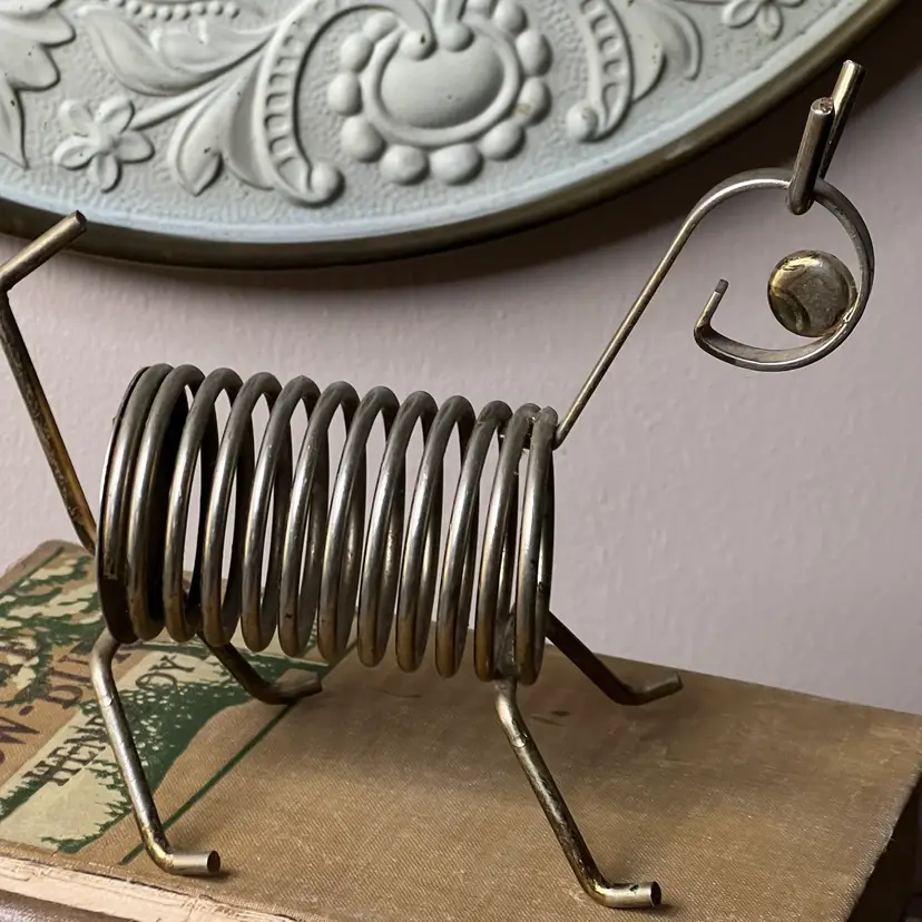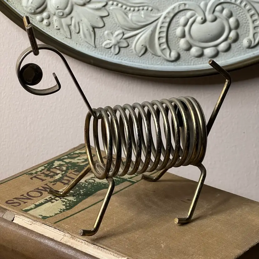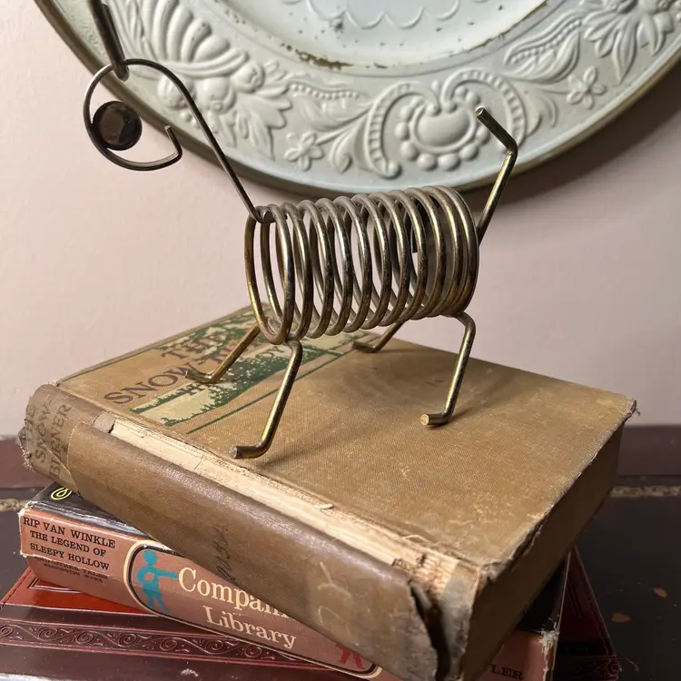 025 Vintage MCM Brass Plate Dog/ Lamb? Letter Bill Photo Holder6" X 5.5" X 3"