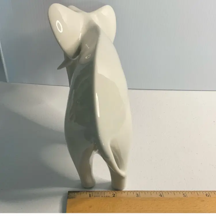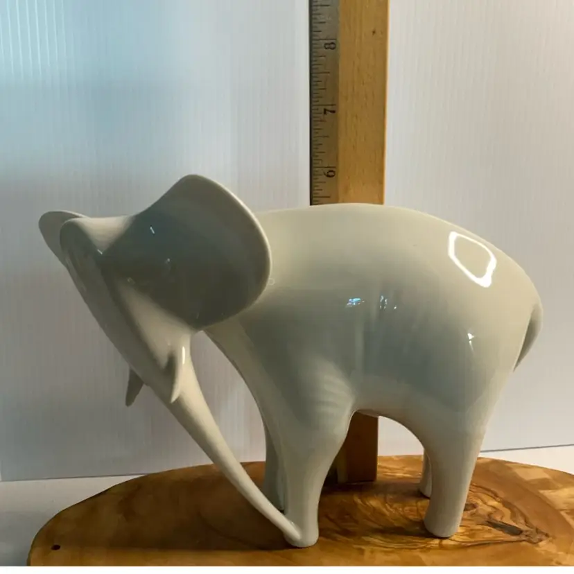 As shown. No chips or cracks. 5.5 inches tall. 8 inches long. 3 inches wide. Very mid looking piece.