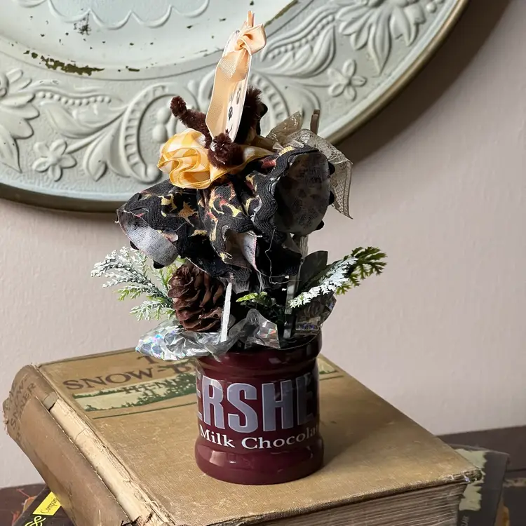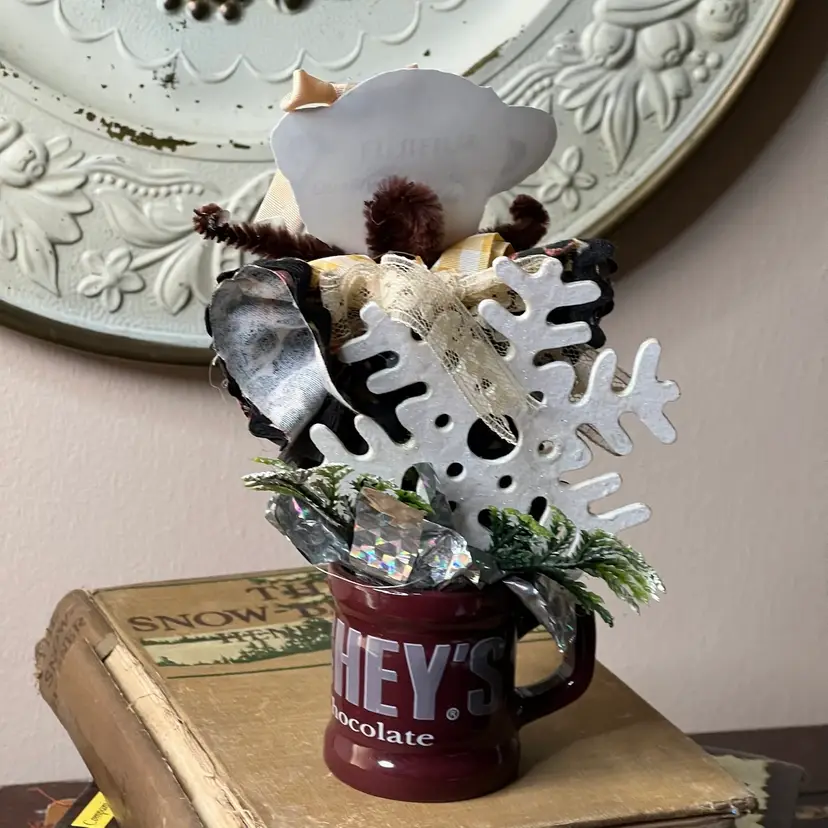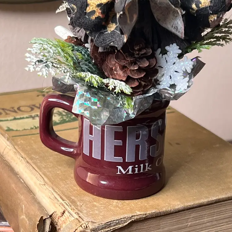 027 Handcrafted Assemblage Hershey's Cocoa Milk, Chocolate Miniature Mug With Bear 7.5" X 4.5"