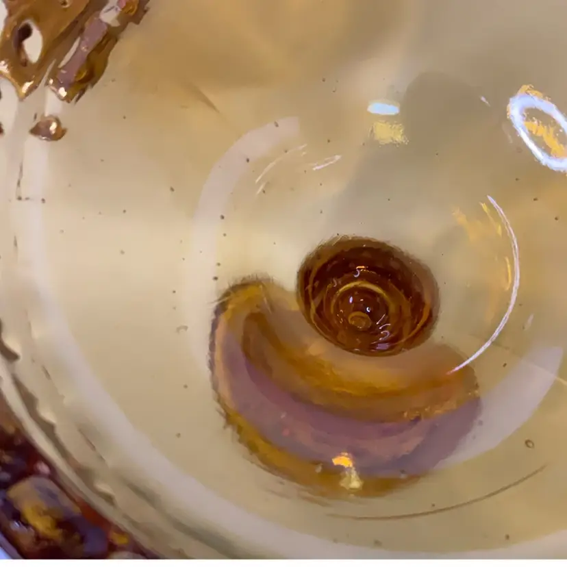 As shown. No chips or cracks. May show small internal bubbles or straw marks 4.5 inches tall. Base is 3.5 inches wide