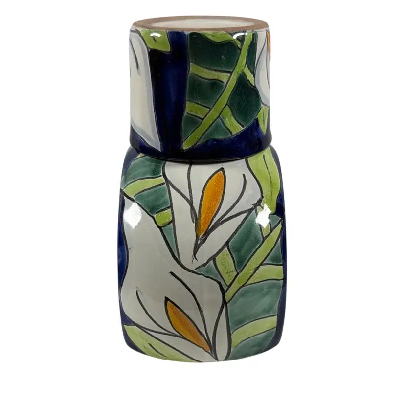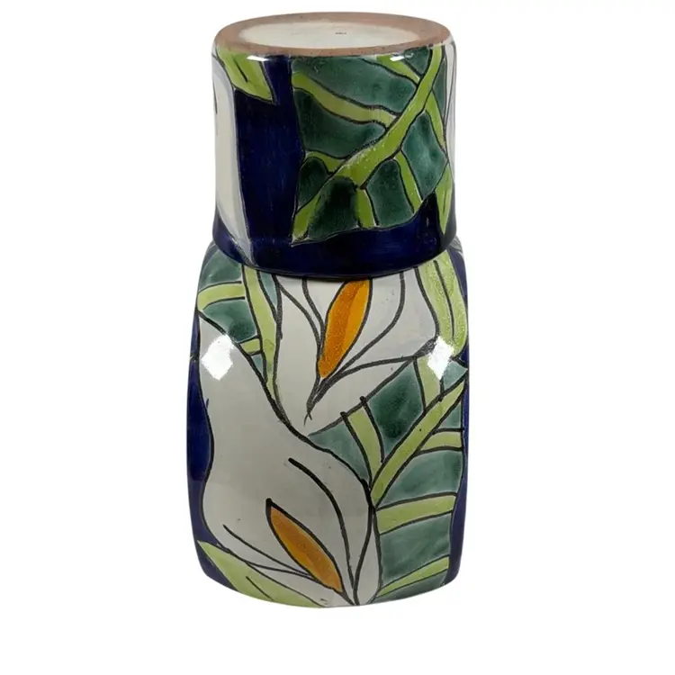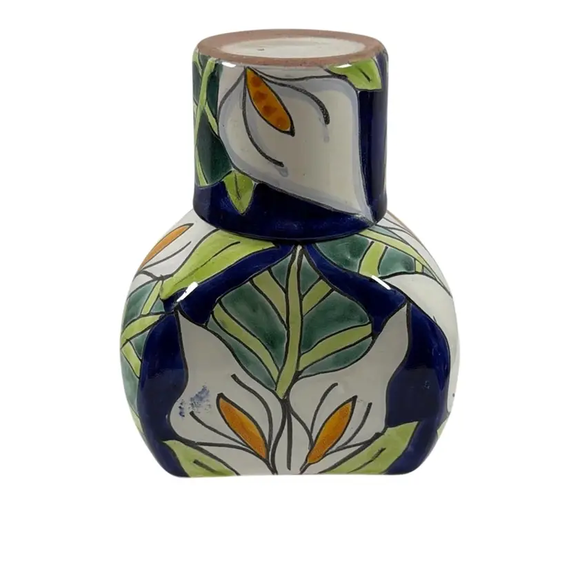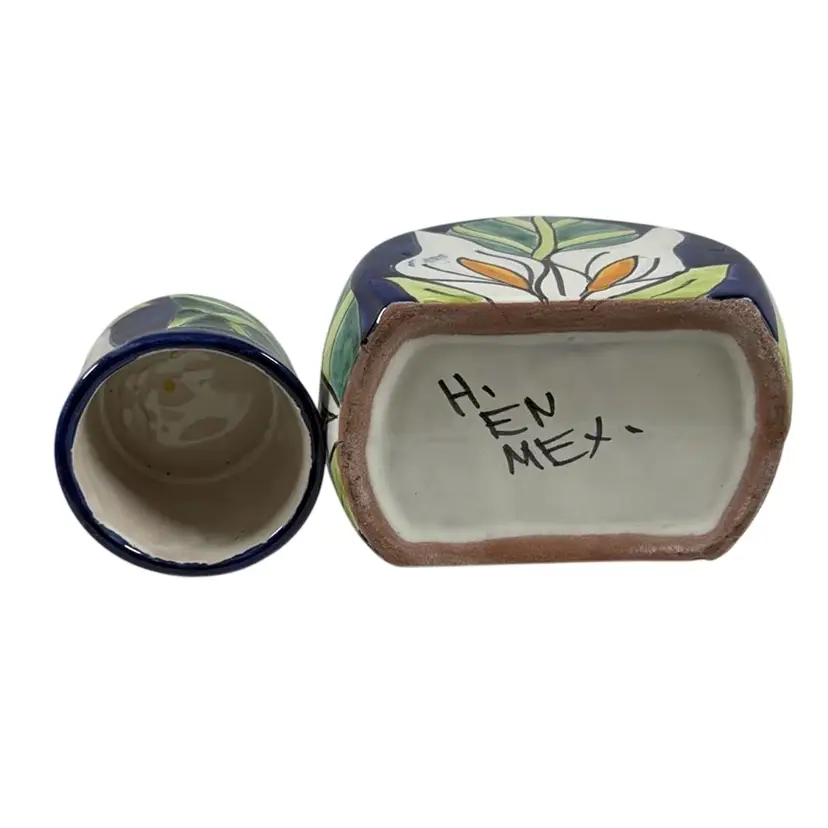 028. Talevera Mexican Pottery Tumble Up 7” x 5.75” x 3.5”