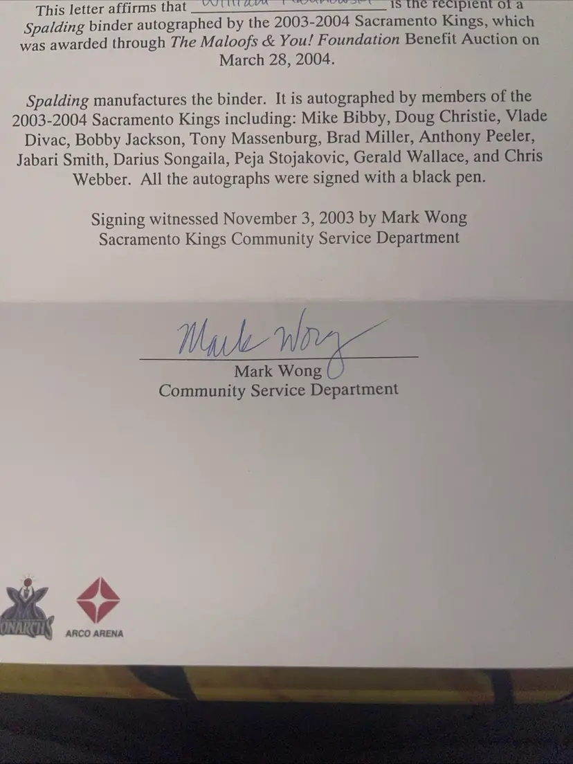 Contains the 2003-2004 Sacramento kings lineup signed with coa!