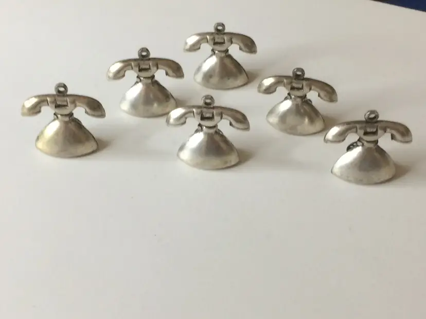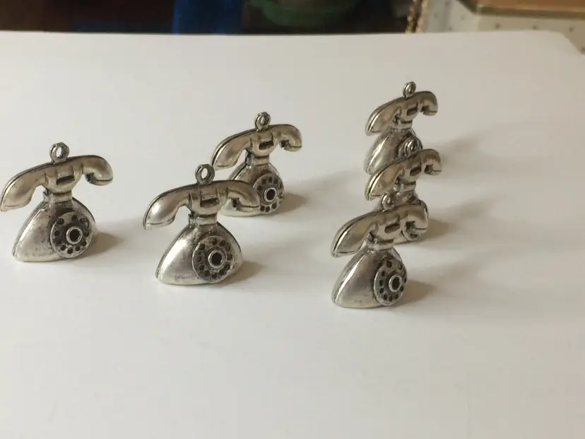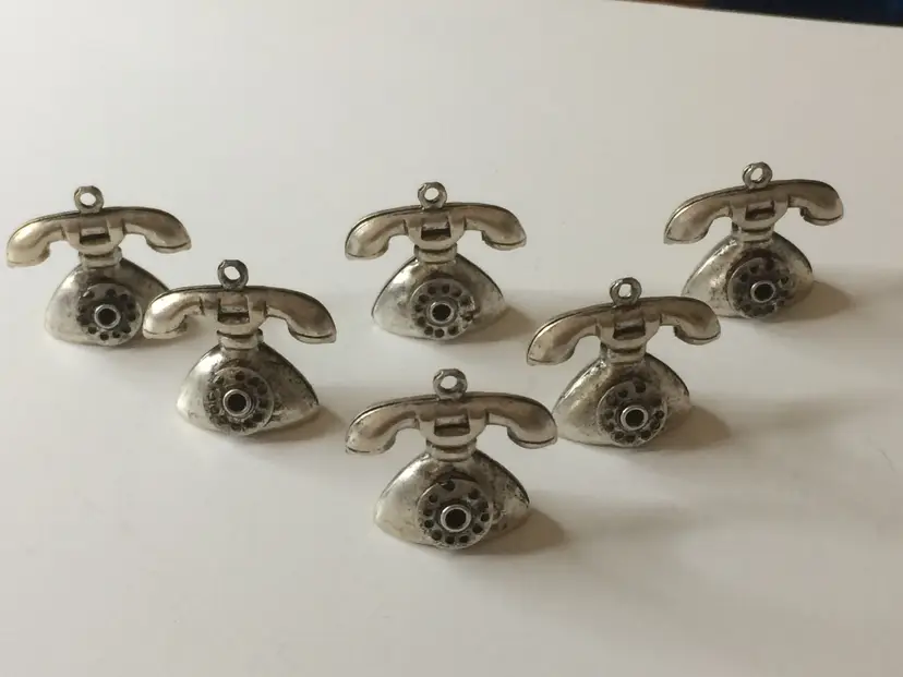 6 Metal Telephone Charms with Turning Dials 3/4" tall x 3/4" wide. Great for crafting or jewelry making! NEW to District? Enter code Michel42 into your wallet prior to your first ever purchase and save $5 off any $10 or more! Give me a Follow and I WILL Follow you back!
