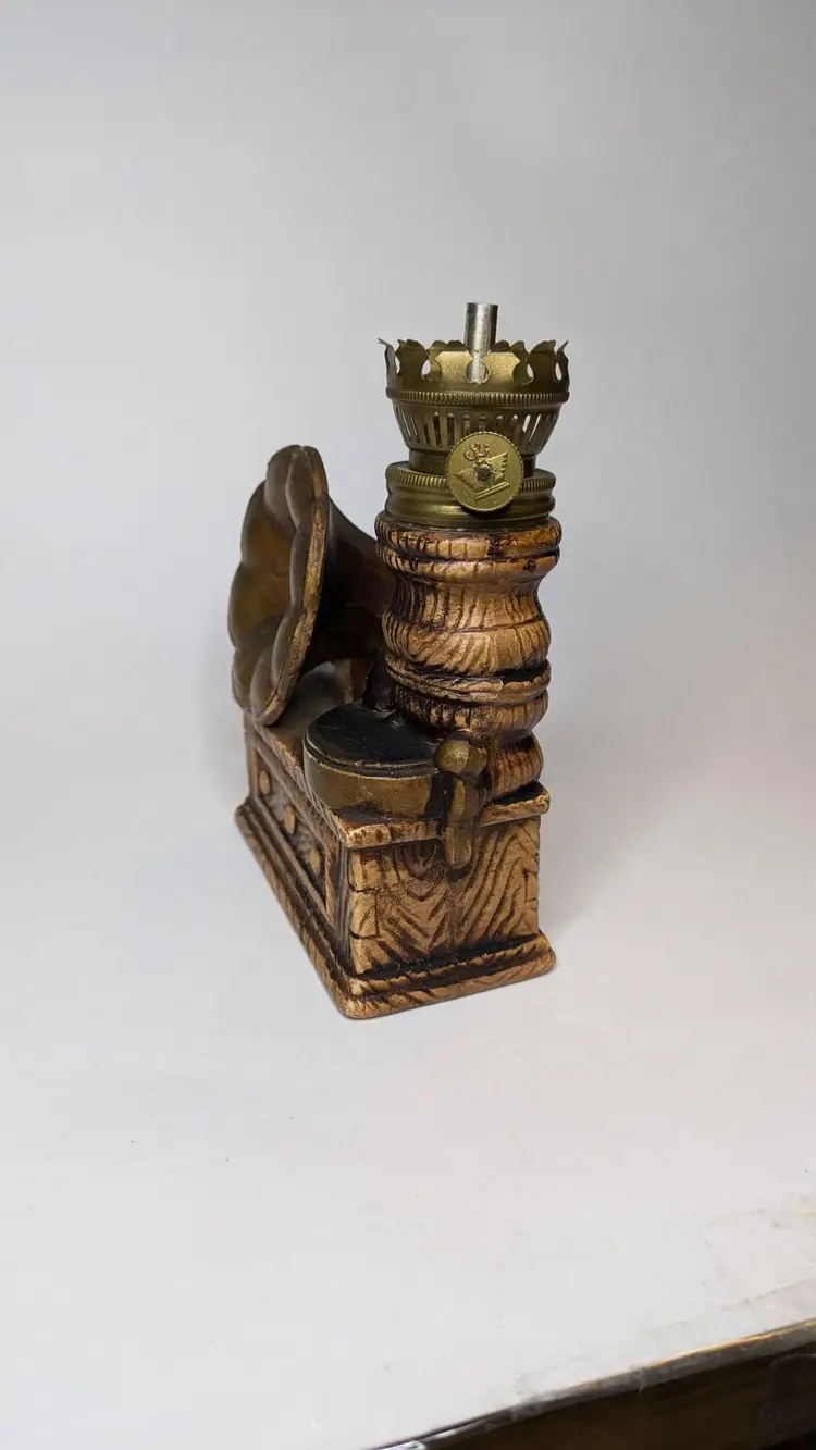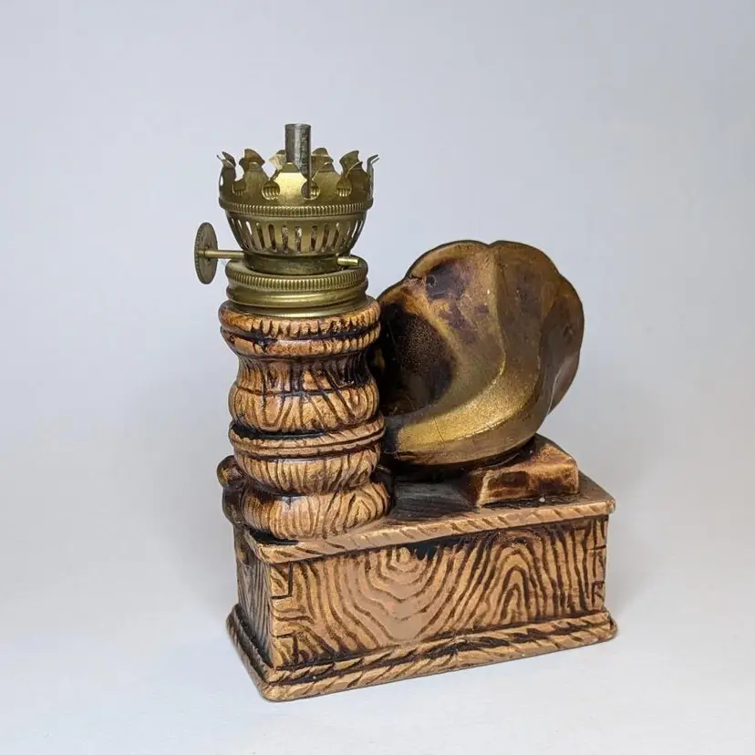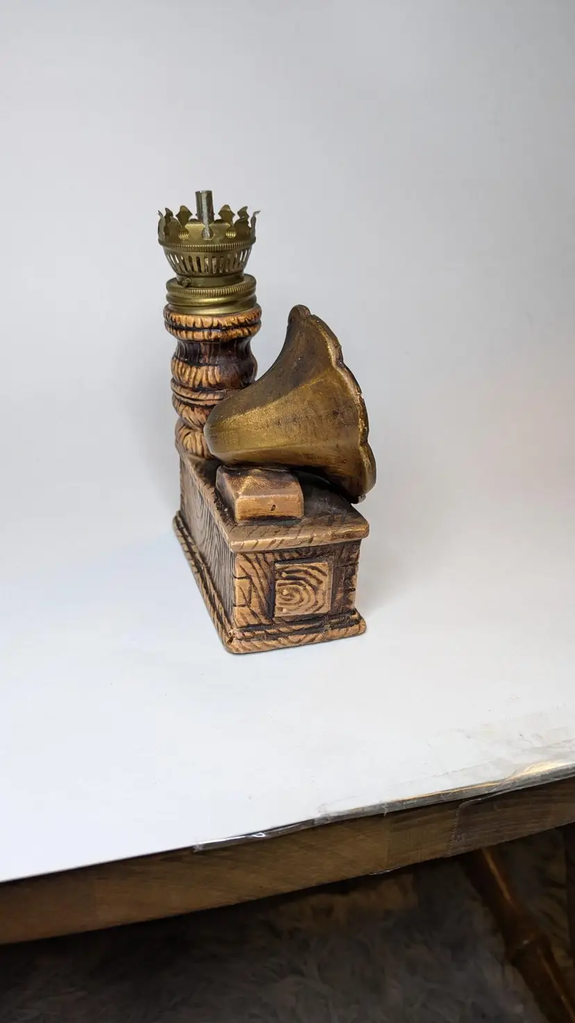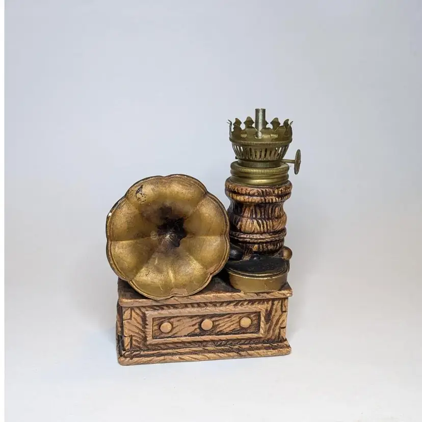 Antique Porcelain Mini Kerosene Oil Desk Lamp VTG Lantern Phonograph 78 Rare Chalkware