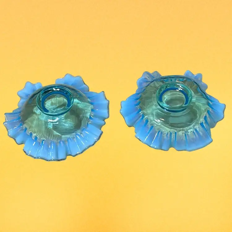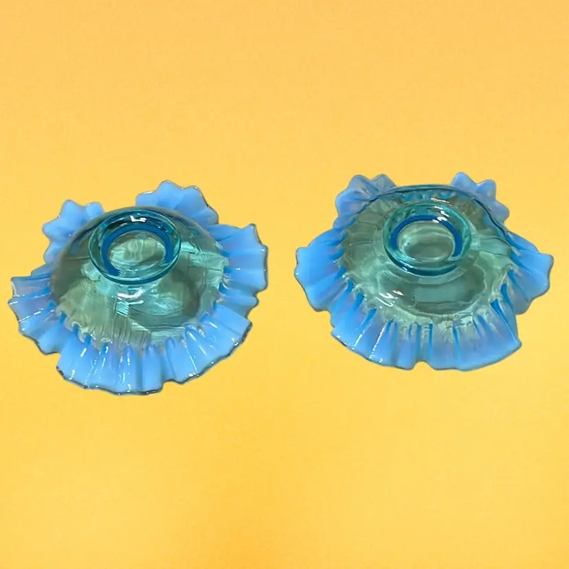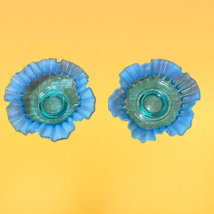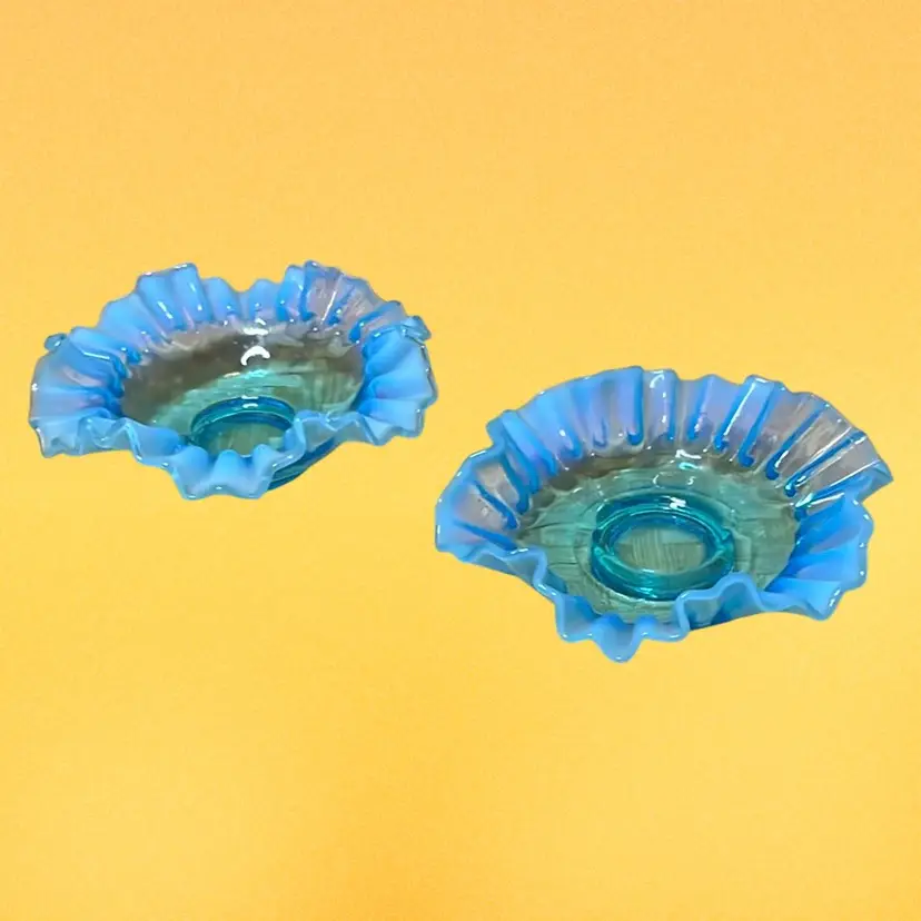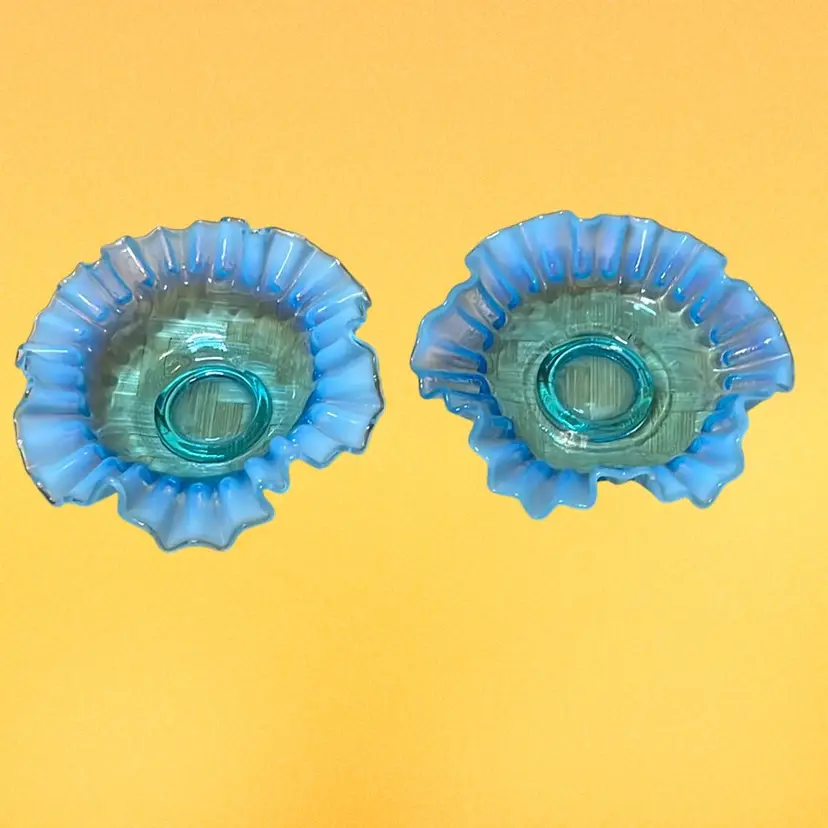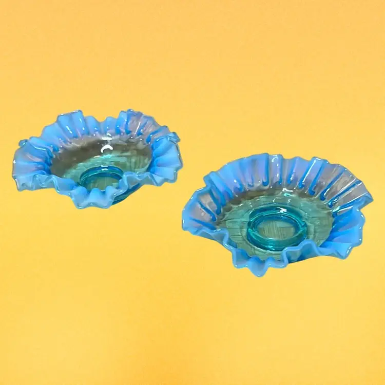 04. Fenton Blue Opalescent Crimped And Ruffled Art Glass 5.25" Bowls