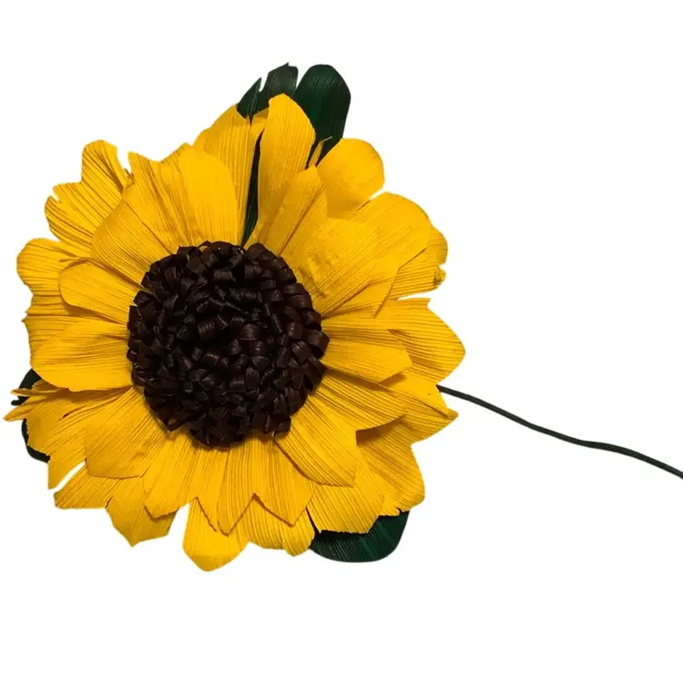 # 032. Handcrafted Lemon Yellow Corn Husk Sunflower 🌻 Flowers 5” Blossom Approximately 10” Long
