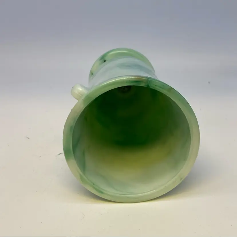 6x3 no chips, possible hairline crack but believed to be manufacturers error. Akro Agate Company was an American glass manufacturer known for its colorful slag glass, marbles, and children's toy dishes. Founded in 1910 in Akron, Ohio, the company became particularly famous for its "slag glass" pieces, which featured marbled patterns of opaque colors, often green, white, blue, and purple. These pieces were popular decorative items during the mid-20th century.