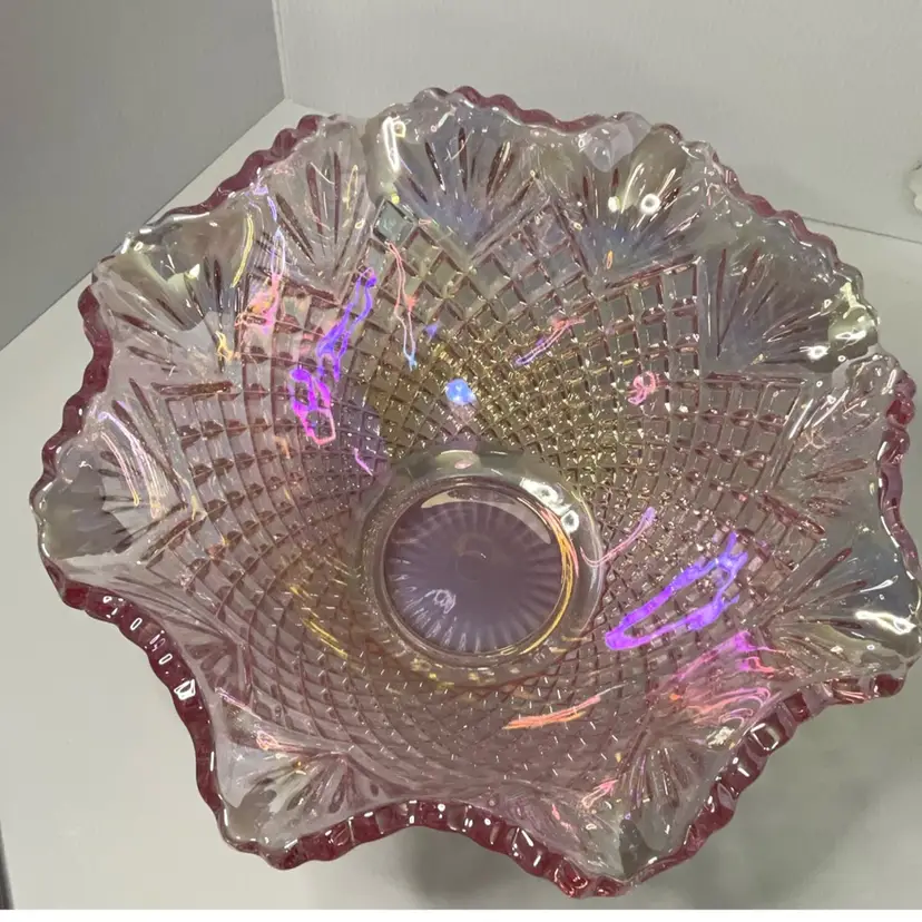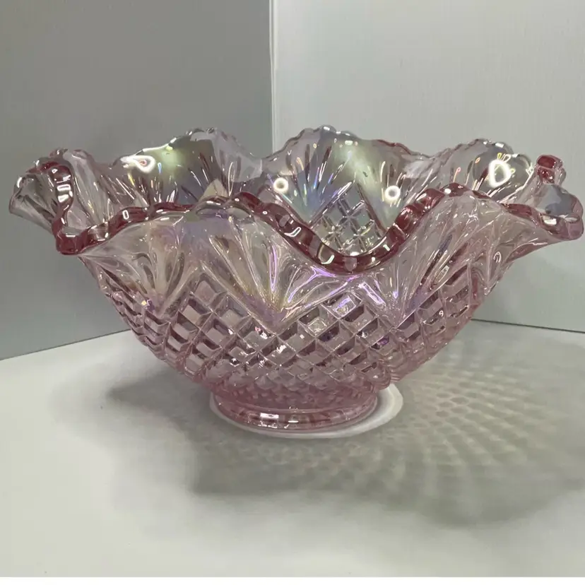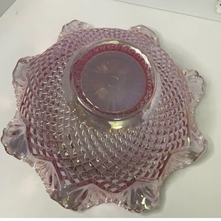 As shown. No chips or cracks. May show small bubbles or straw marks. 6 inches deep. 13 inches across.