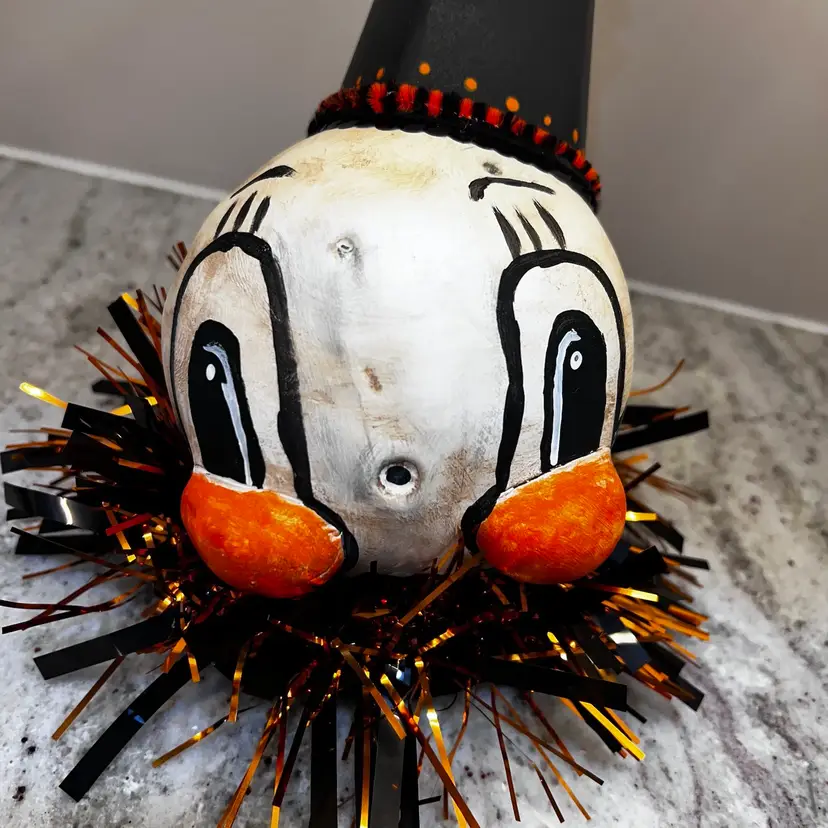 Made entirely by me! His creators and cheeks glow under black light! Approx 7” tall