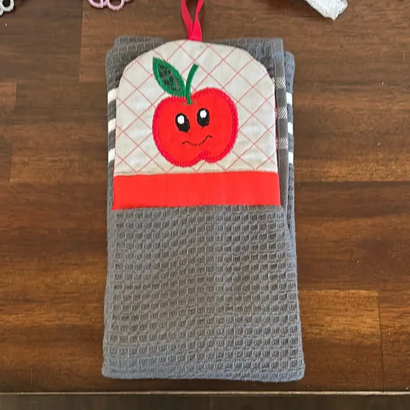 These dish towels are made to be hung. The topper is made on embroidery machine.
