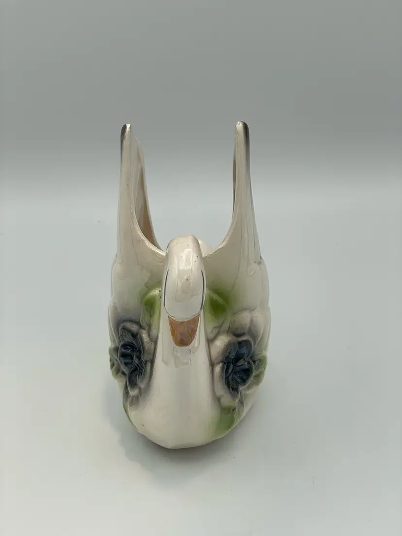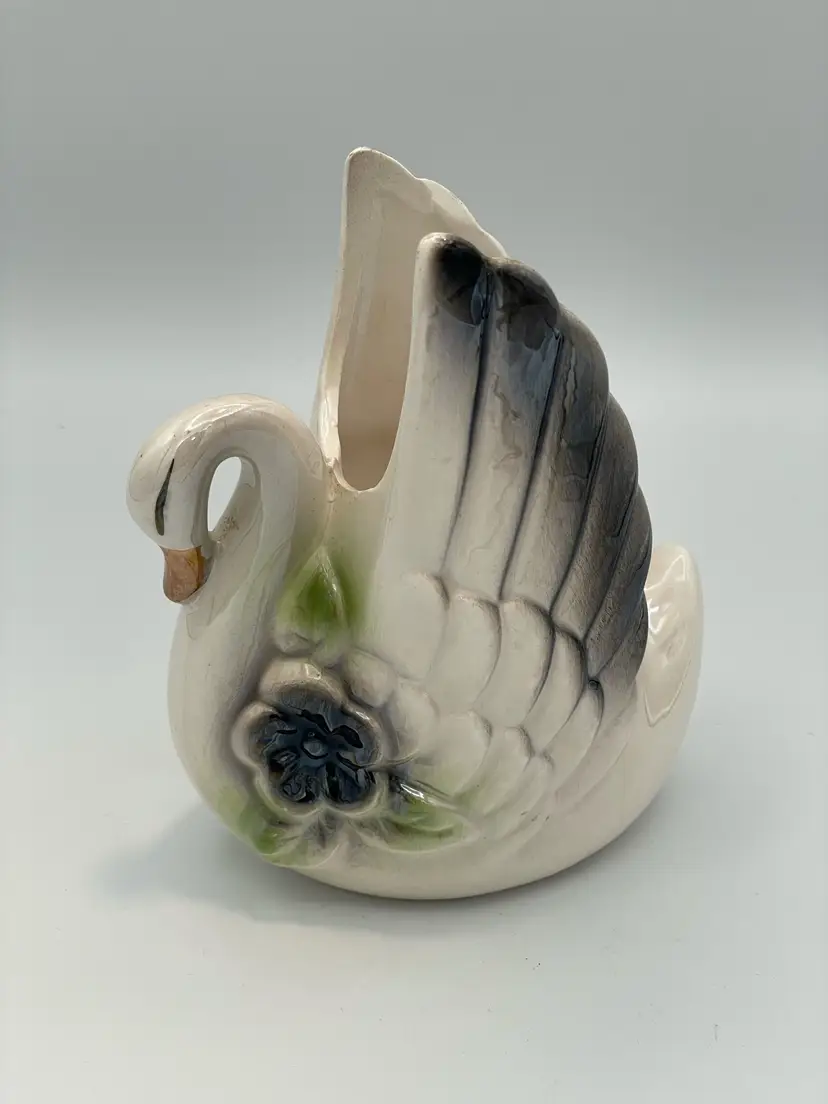 Ceramic Swan Planter. Gray/Green. No Chips/Cracks. 5 1/2" H X 4 1/2" W.