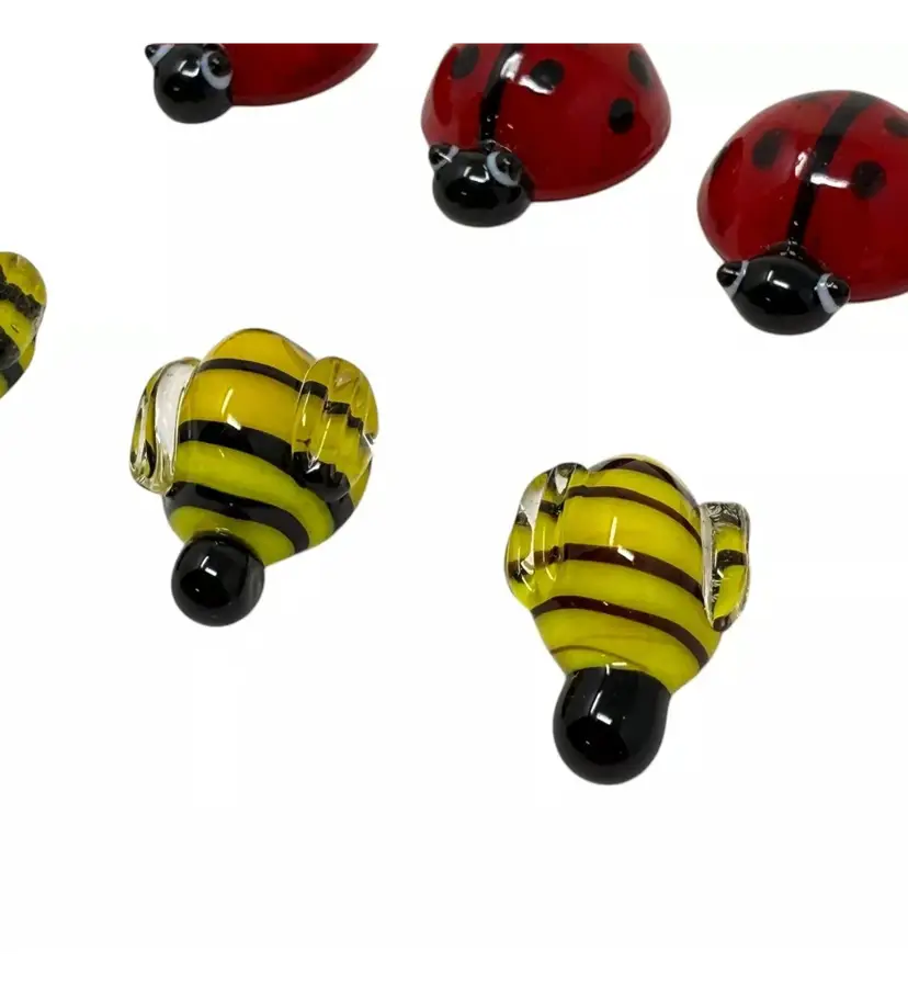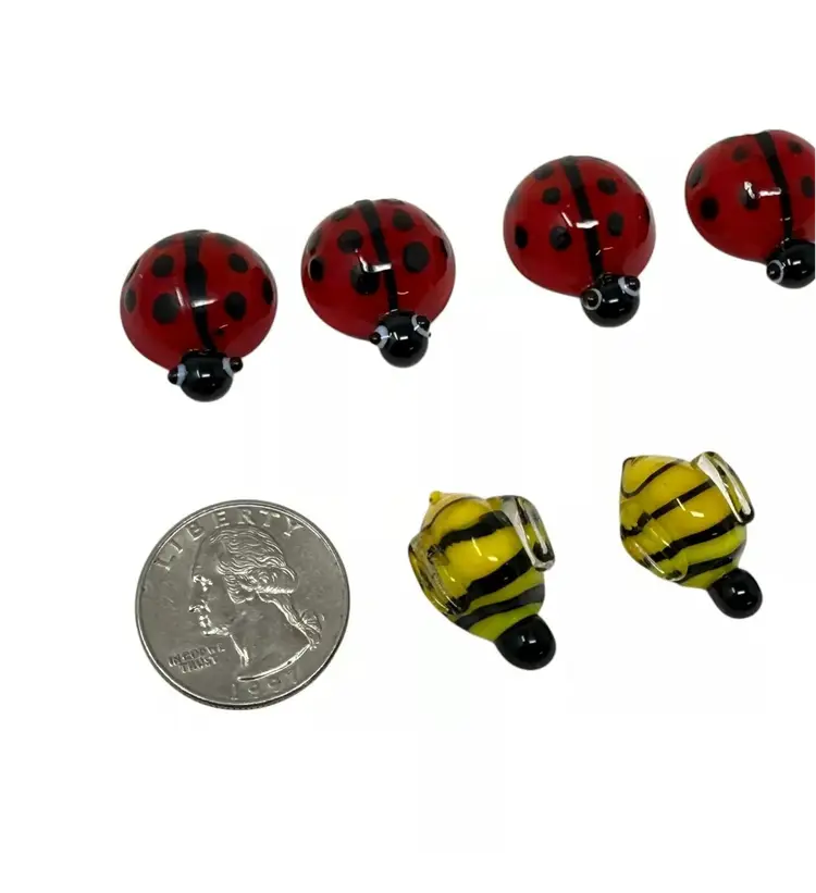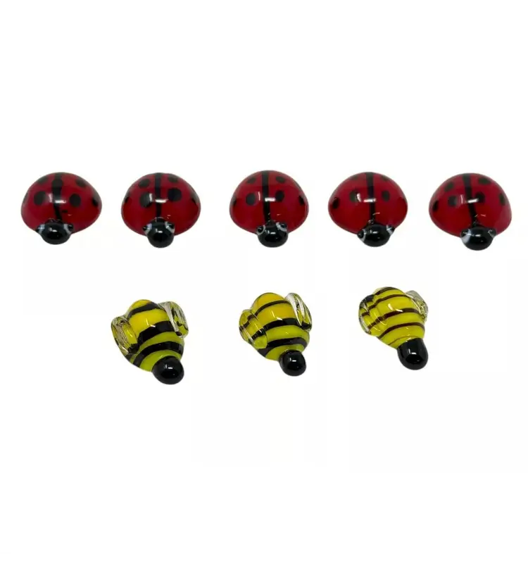 Lot Of 8 Miniature Ladybug And Bee Glass Figurines